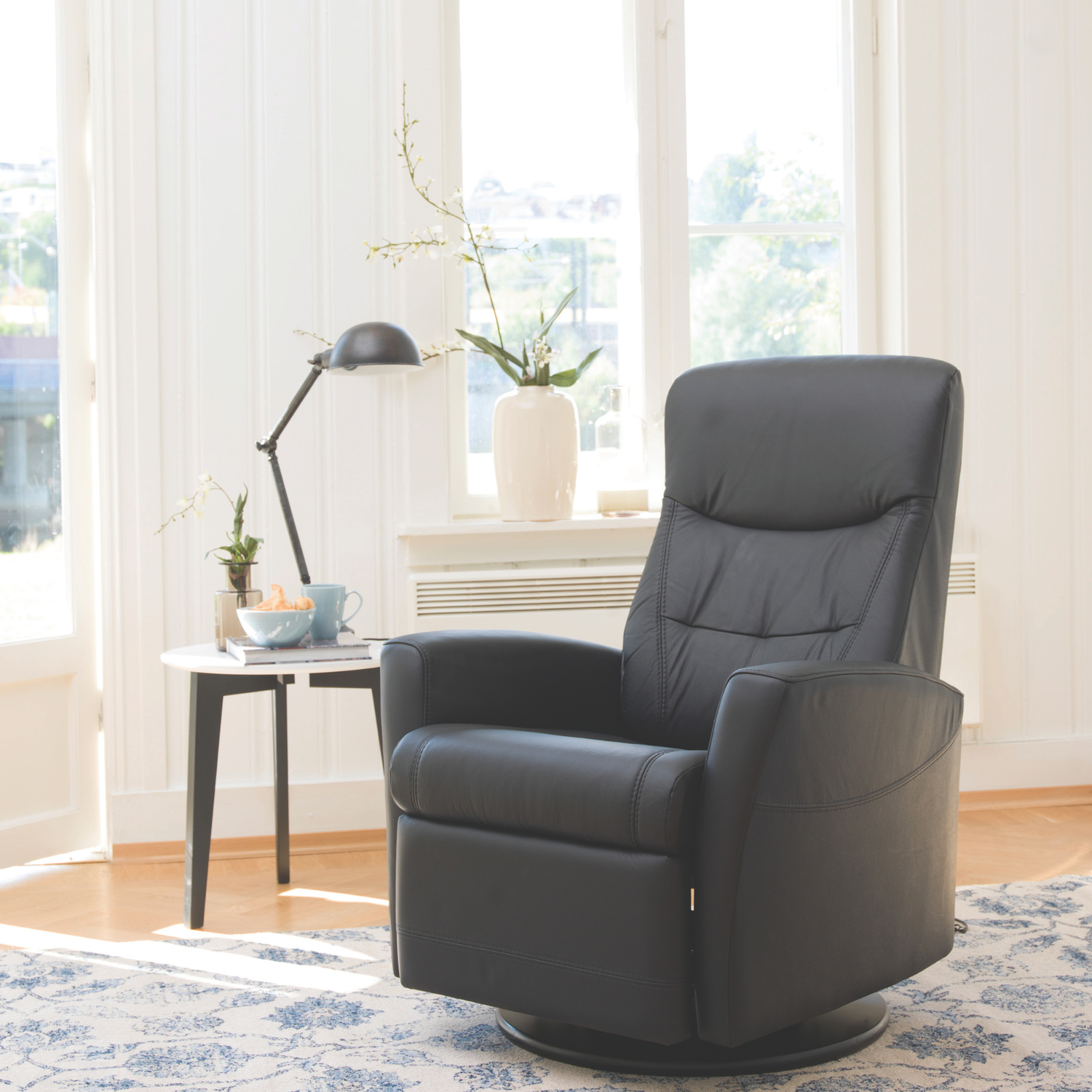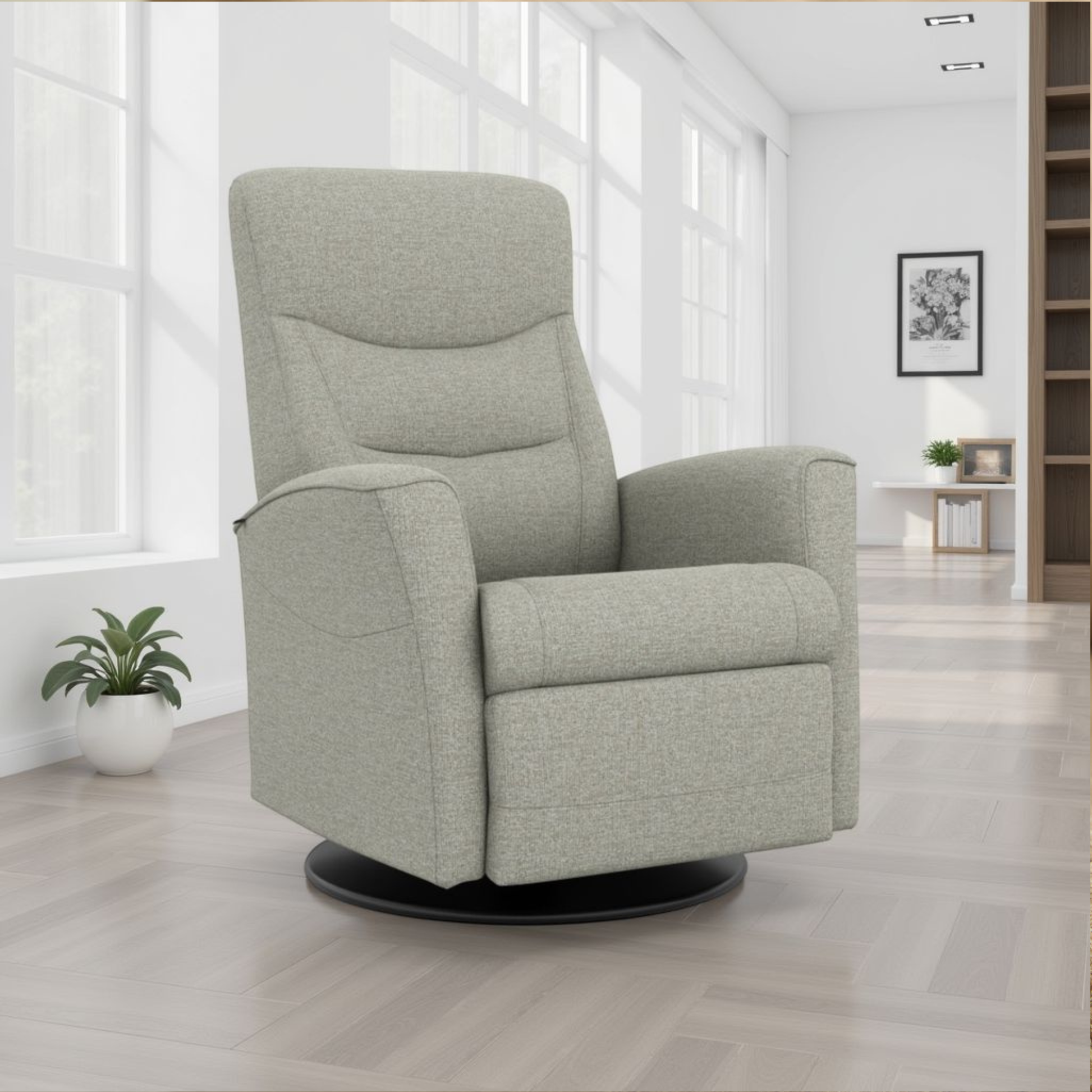 The Oslo Power Recliner provides both comfort and flexibility with its multi-motion capabilities, including smooth swivel, glide, and rocker functions, allowing users to find their ideal seating position effortlessly. The adjustable headrest offers personalized neck and head support for enhanced ergonomic comfort. Finished with a sleek black base and clean Scandinavian lines, the Fjords Oslo Power Recliner combines luxury, durability, and advanced functionality into a truly premium recliner experience for modern living spaces.