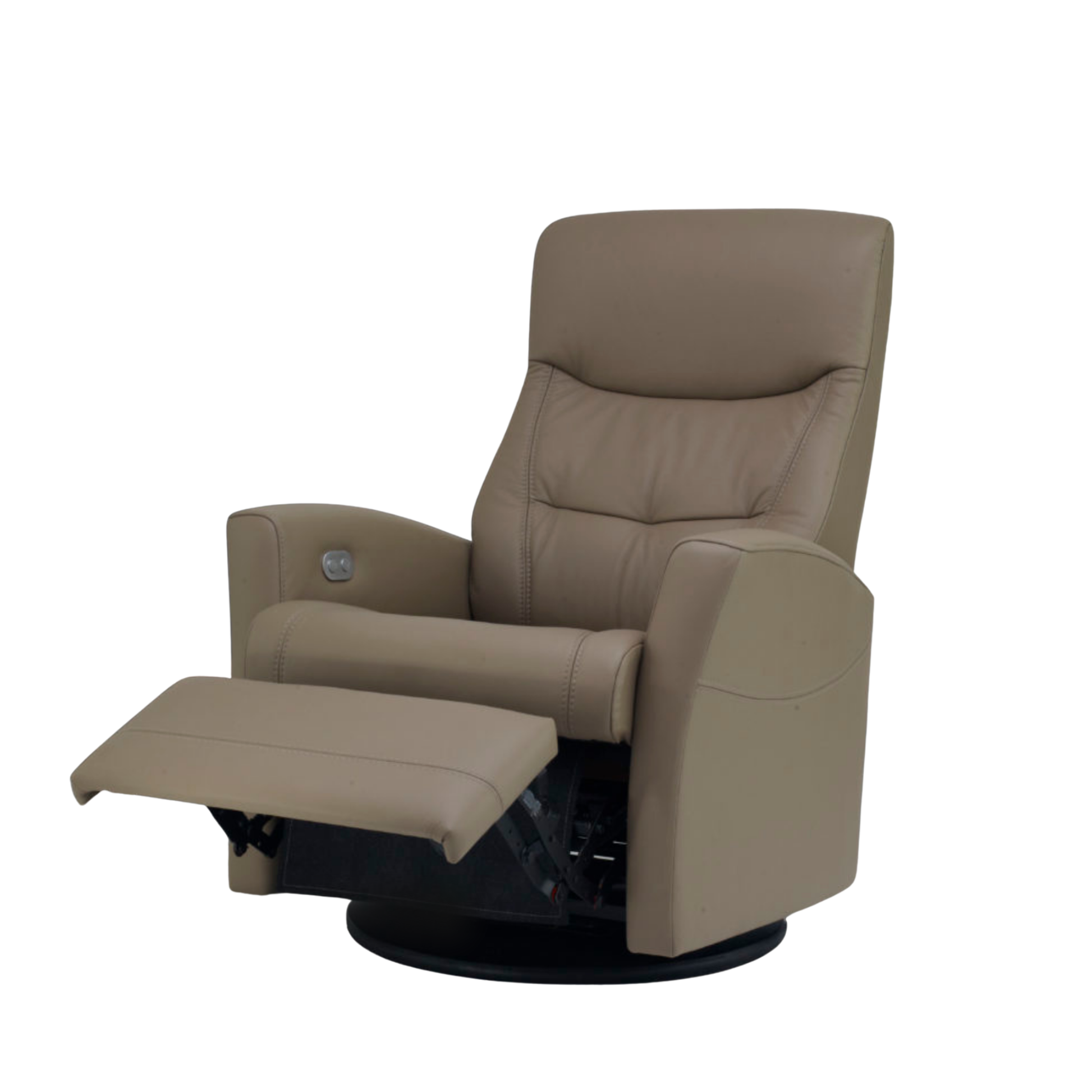 The Fjords Oslo Power Leather Swivel Recliner Chair is a perfect blend of Scandinavian design, premium materials, and ergonomic engineering, making it a standout piece in any living space. Crafted with top-grain Nordic-line leather, the chair offers a soft, durable, and luxurious feel that is easy to maintain while providing long-lasting elegance. Its interior features cold-cured molded foam, which ensures consistent seat support, relieves pressure points, and maintains shape over years of use.