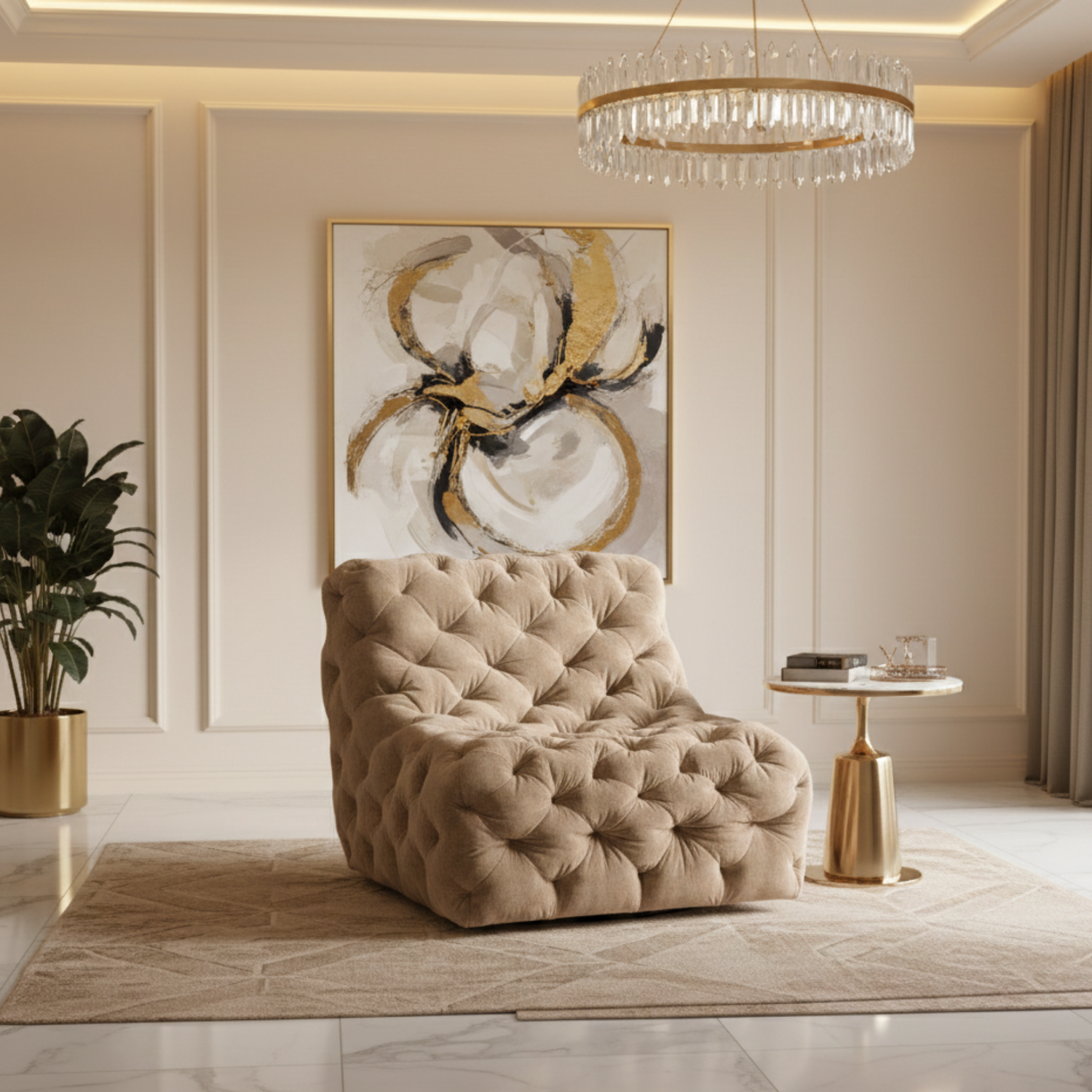 Bring warmth, texture, and easy elegance into your home with the Bernhardt Rigby Fabric Tufted Swivel Chair. Styled in a cozy living room setting, this chair instantly becomes the soft, inviting focal point-its deep diamond tufting and plush curves catching the light beautifully while blending naturally with any decor. Whether paired with a modern rug or nestled beside a classic side table, it elevates the room with quiet luxury.