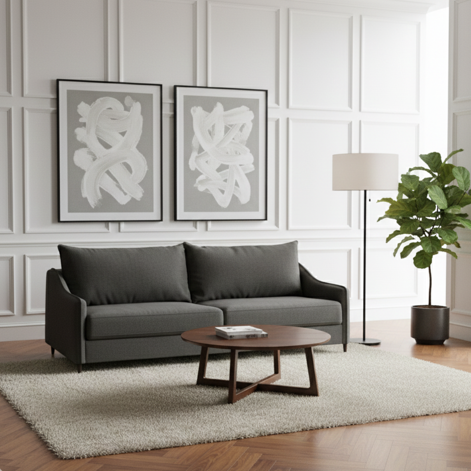 Imagine your living room anchored by the Luonto Elfin Fabric Sleeper Sofa, where clean Scandinavian lines meet everyday warmth. Styled with soft throws, layered cushions, and natural light, Elfin feels instantly at home - whether placed in a cozy apartment or a refined family living space. Its tailored fabric upholstery and slim profile create an airy, uncluttered look that complements modern, transitional, and minimalist décor with ease.