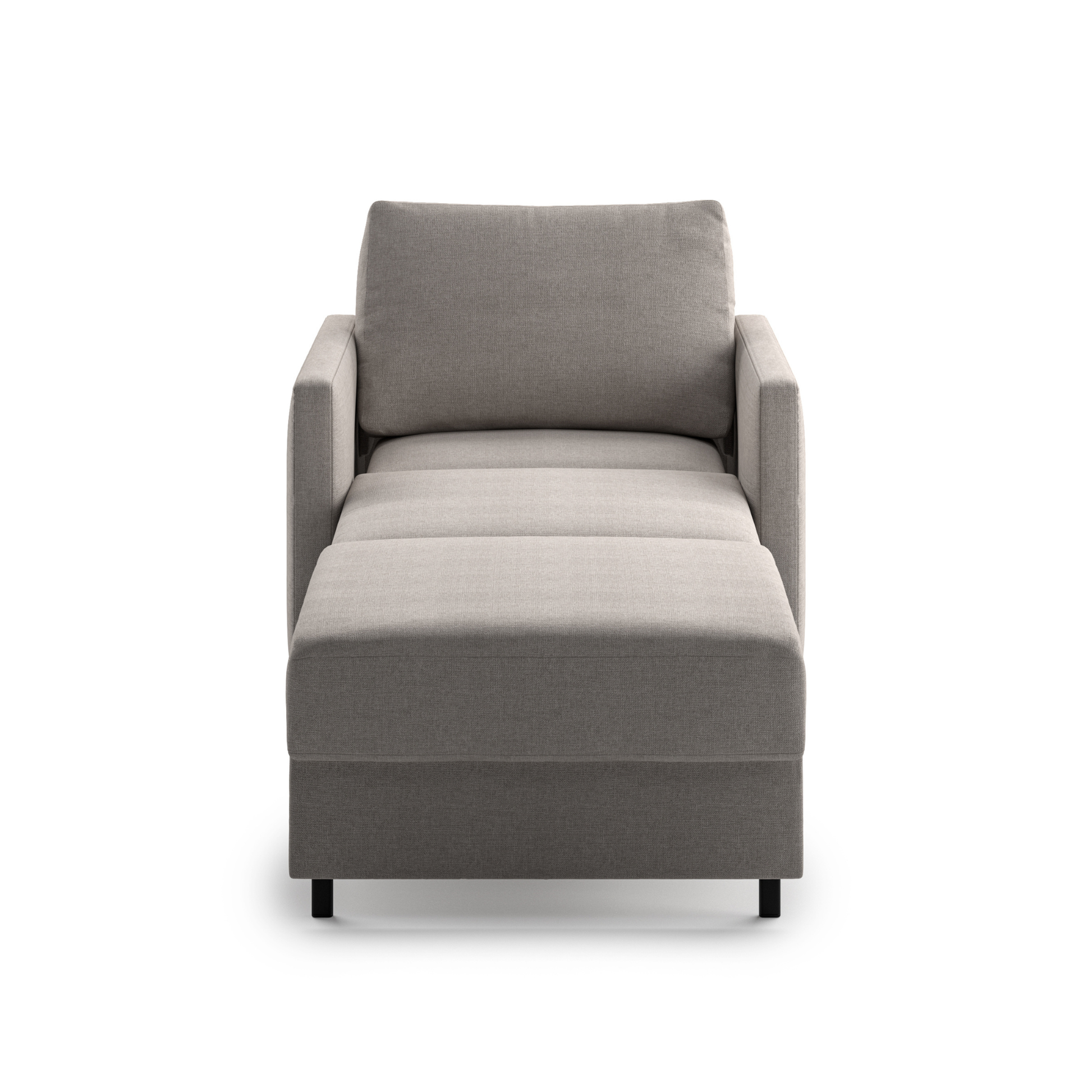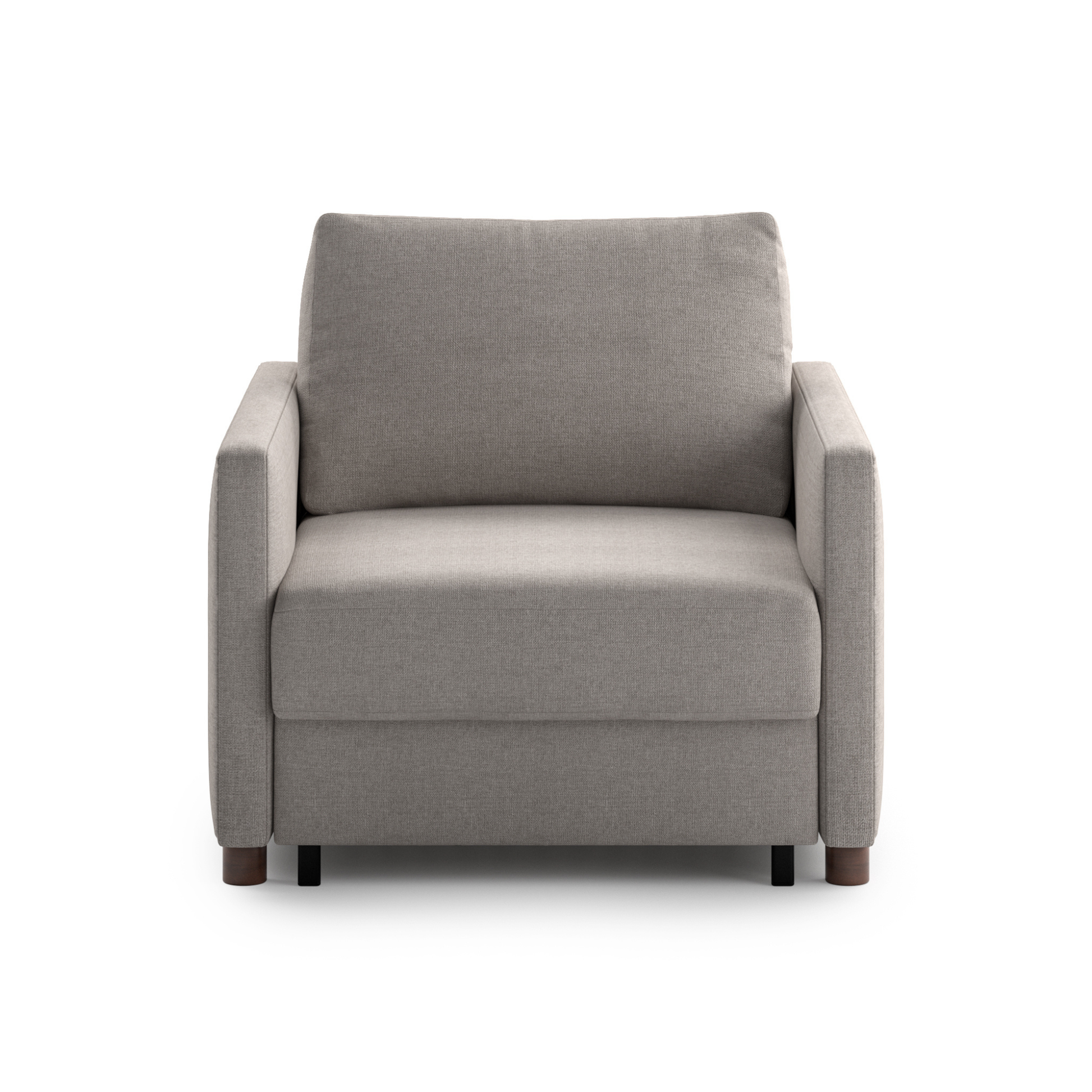 Love the minimalist vibe. The walnut-stained legs give it that Scandinavian feel. The bed opens flat and comfortable. Not many recliner sleepers at this low cost look this good. Minor thing, fabric attracts a little lint but not bad.