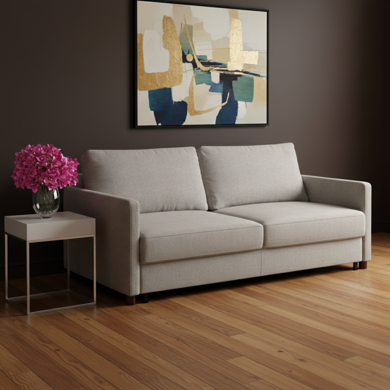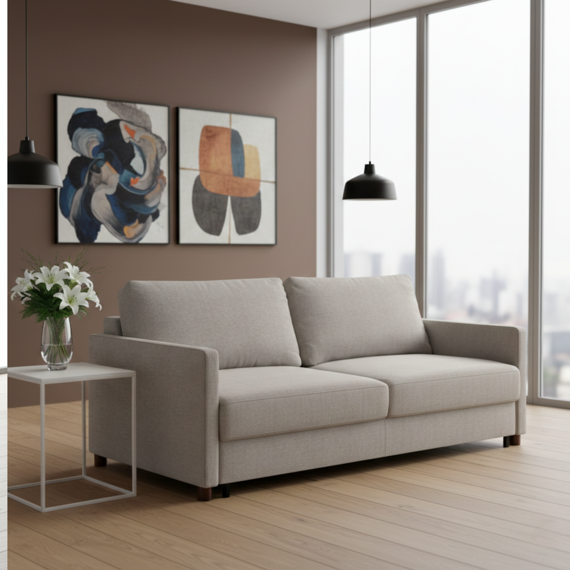 More than numbers, it’s about imagining how it lives in your home. Picture it against a soft neutral wall, walnut legs warming the room, perfectly scaled-not overpowering, not undersized. When opened, the extended depth transforms seamlessly into a welcoming bed, offering both comfort and peace of mind for every guest.