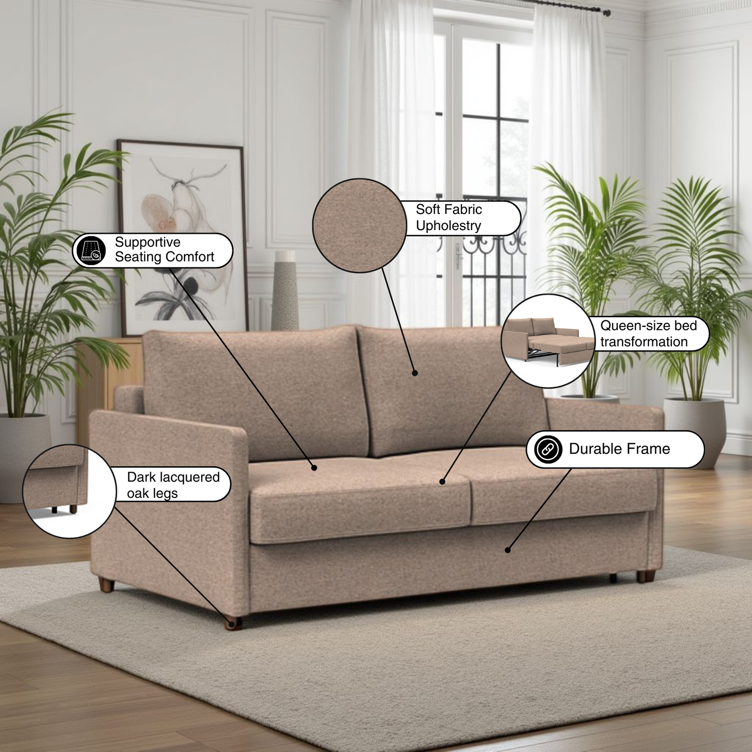Beyond its form, Neah enhances ambience with understated elegance. The full-size bed transformation makes it more than just seating, it becomes a multifunctional centerpiece. Designed for homes that value both style and practicality, Neah offers a seamless blend of contemporary aesthetics and everyday usability.