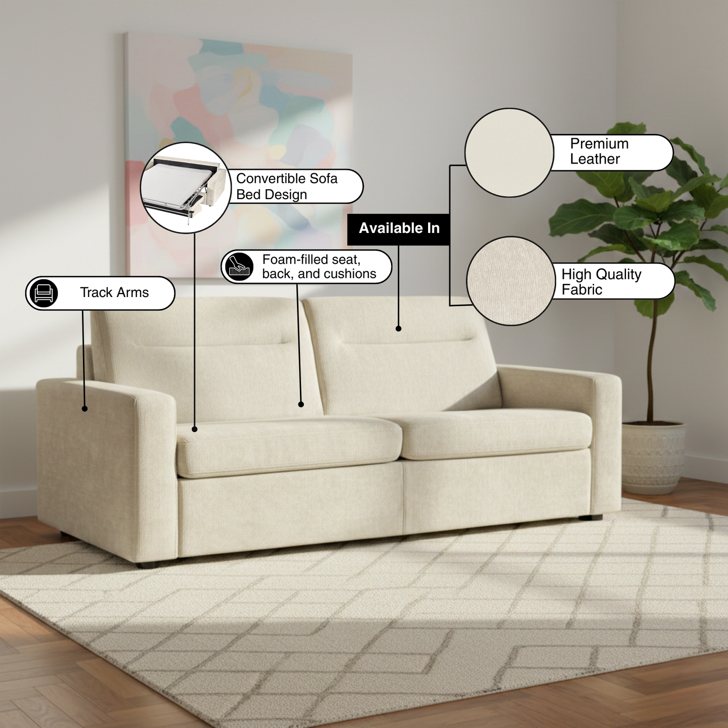 - Convertible Sofa Bed Design Easily folds from sofa to bed, supporting both seating and sleeping use.