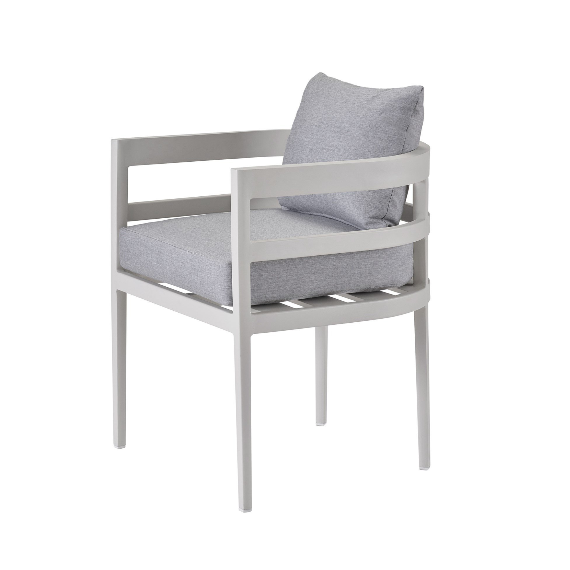 Styled within a beautifully curated living-room scene, the South Beach Dining Chair brings a touch of casual elegance into the home. Its light grey Canvas Granite cushions and fresh Chalk aluminum frame create a look that feels both modern and serene, allowing it to blend seamlessly into refined décor. Gentle curvature softens its silhouette, giving the space an airy, inviting presence while maintaining a naturally sophisticated charm.