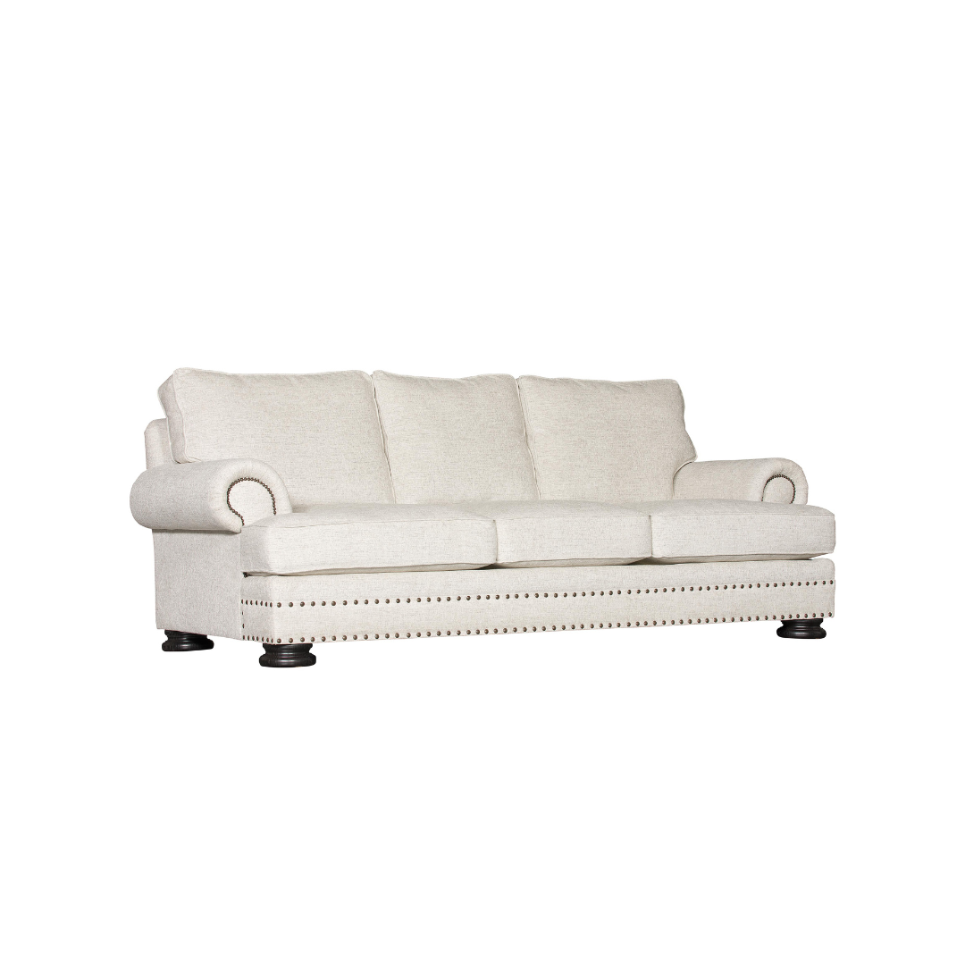 This isn’t just a sofa, it’s a statement piece. The Bernhardt Foster Sofa combines a strong wooden frame with stationary bun feet legs for a look that’s both grounded and graceful. Its rich brown tone, accented with timeless nailhead trim, pairs beautifully with any decor.