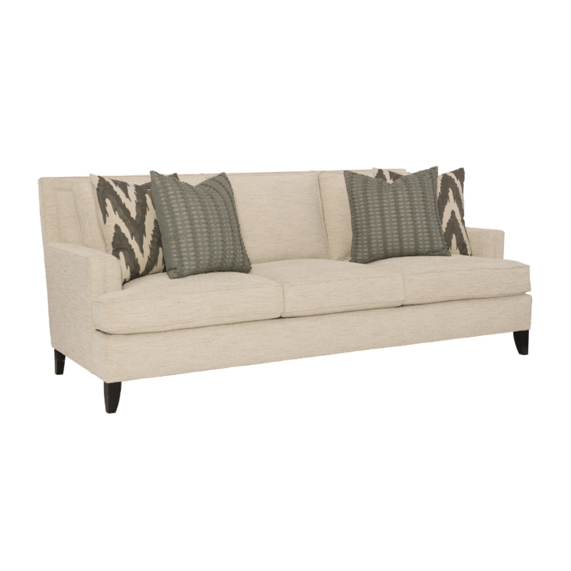 The Addison Sofa features recessed arms and tailored seams that frame the sofa beautifully, offering a refined silhouette with a relaxed feel. The clean piping along the arms and back highlights Bernhardt’s exceptional upholstery expertise, while multiple cushions and loose throw pillows add softness and versatility. Designed for ultimate relaxation, the sofa is built with premium spring down cushions that provide long-lasting support and plush comfort.