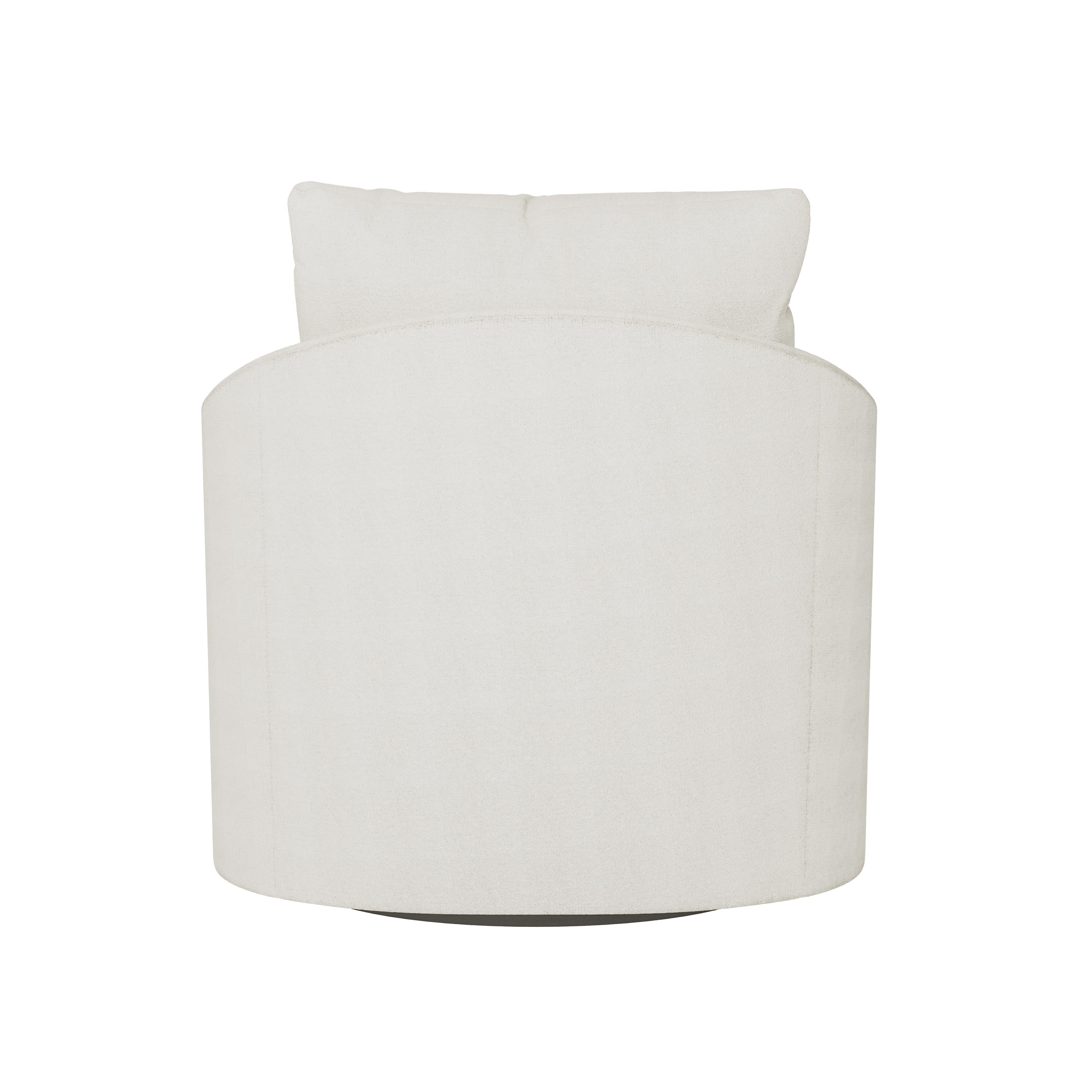 The Bernhardt Astoria Fabric Swivel Chair brings a soft, welcoming presence to your home, inviting you to slow down and settle in. Wrapped in beautifully tailored upholstery, it offers a smooth 360° swivel that makes conversation, lounging, and everyday living feel that much easier. Its gently curved back and plush cushioning create a cozy, supportive seat perfect for morning coffee, long chats, or those quiet moments you steal just for yourself.