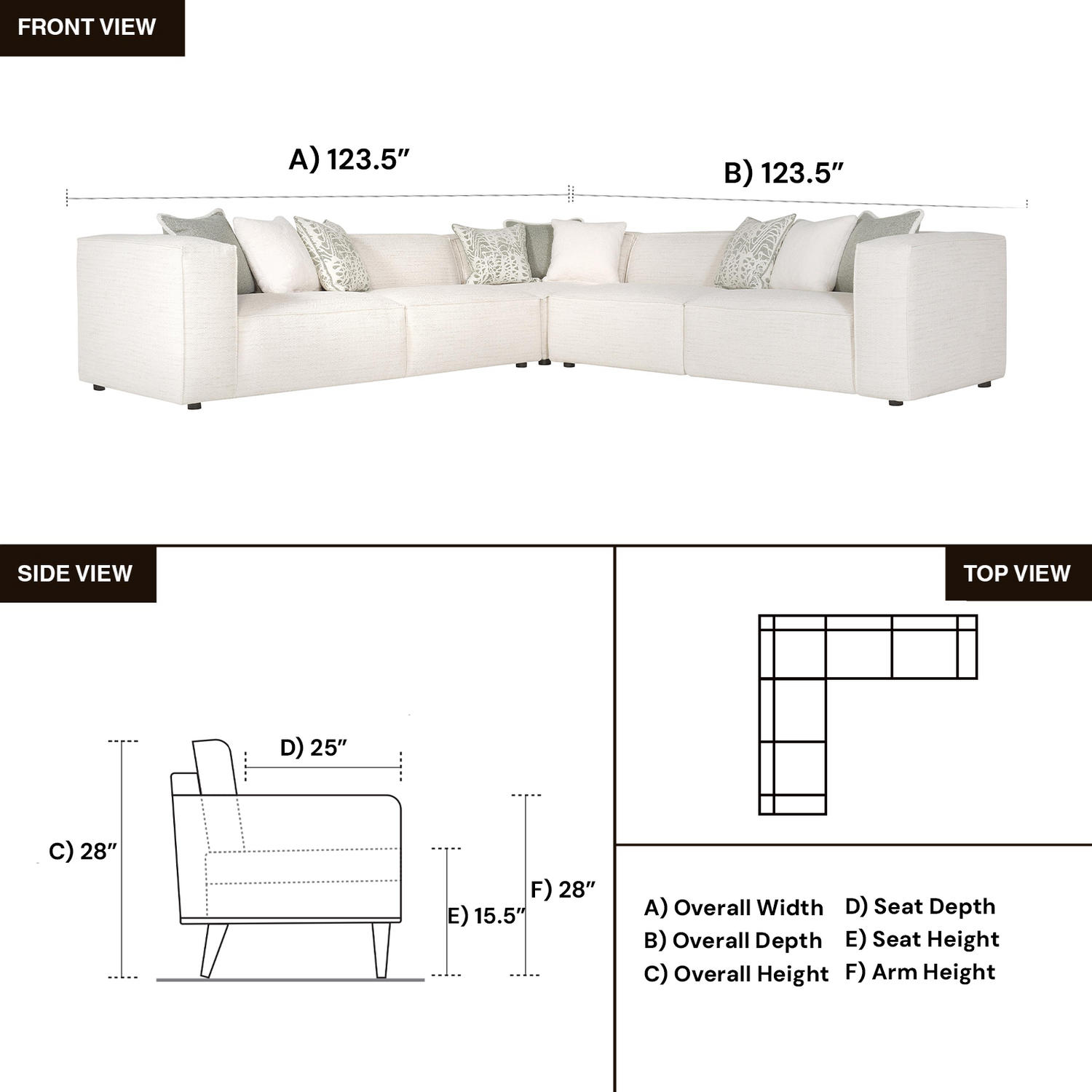 - 3 Pieces Dimensions 123.5" W x 123.5" D x 28" H