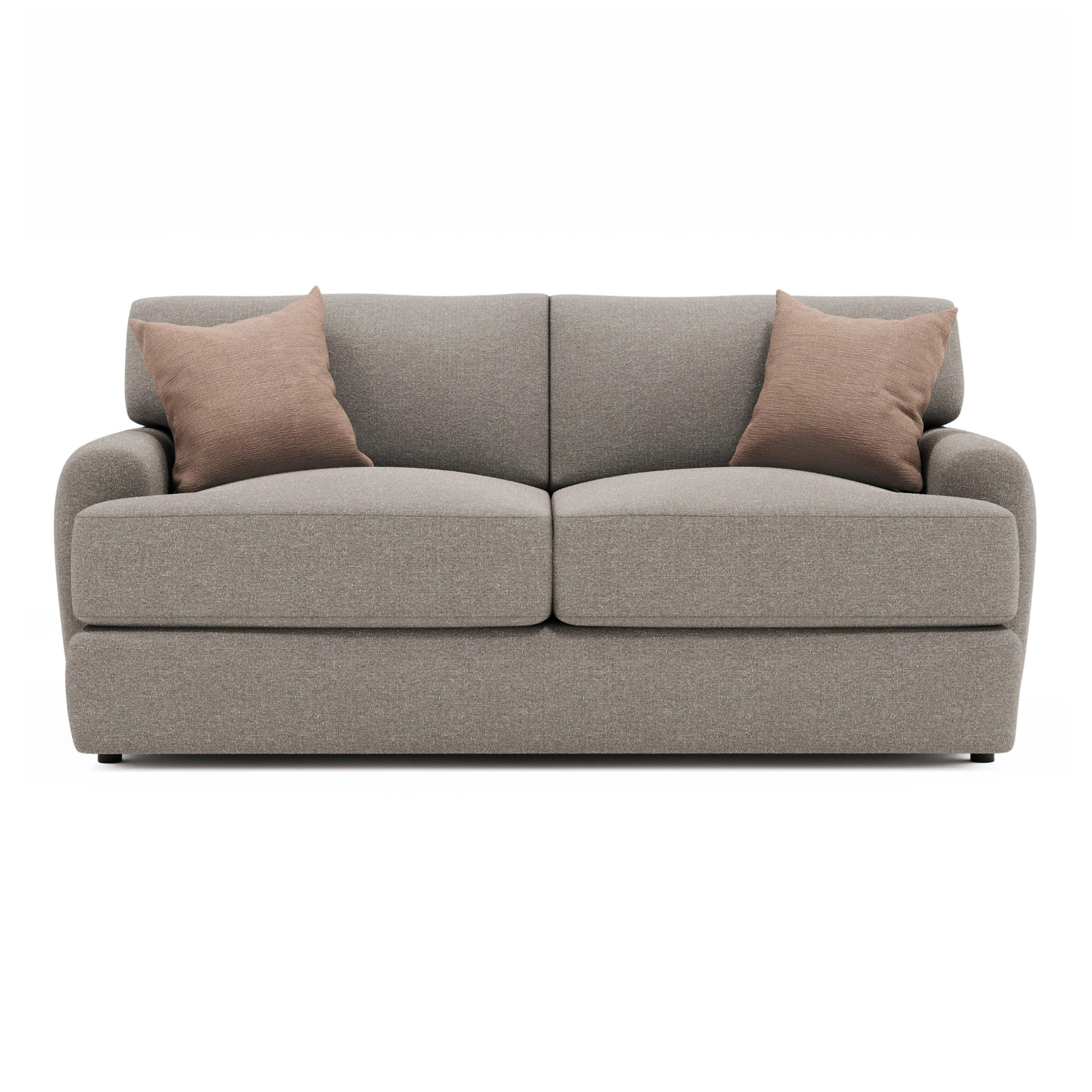 The Bernhardt Cameron Fabric Loveseat with Oversized Roll Arms blends timeless style with everyday comfort, making it a beautiful addition to any living room. With its softly curved roll arms and plush cushions, the loveseat creates a warm and inviting place to relax. The dimensional image helps you clearly see its generous proportions-about 71.5 inches wide with a comfortable seat depth-making it easy to imagine how perfectly it fits into your space beside a coffee table, lamp, or cozy area rug.