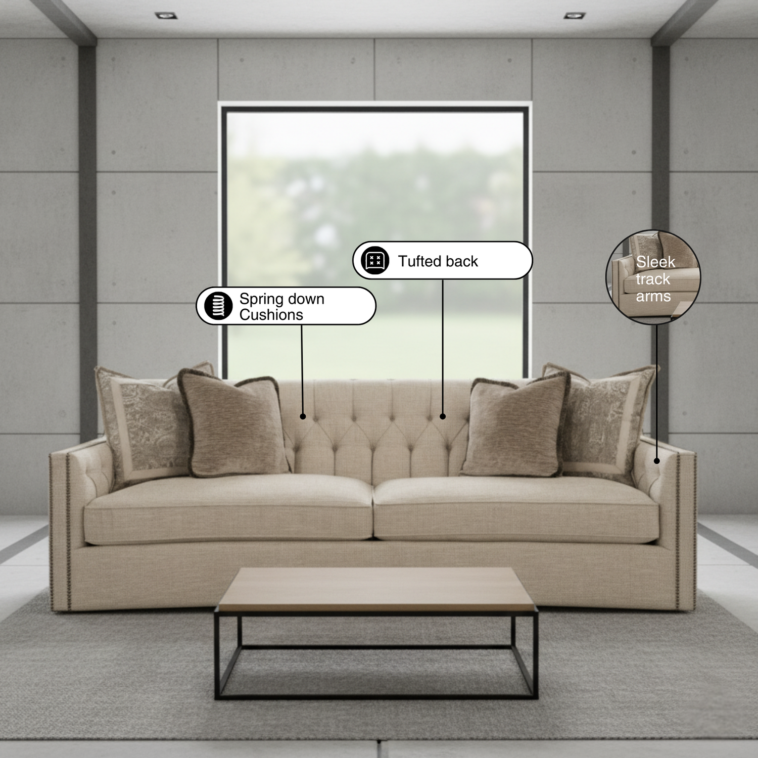 The tight back, deep hand-tufting, premium nailhead trim, and reversible cushions aren’t just design choices they’re daily-life features.