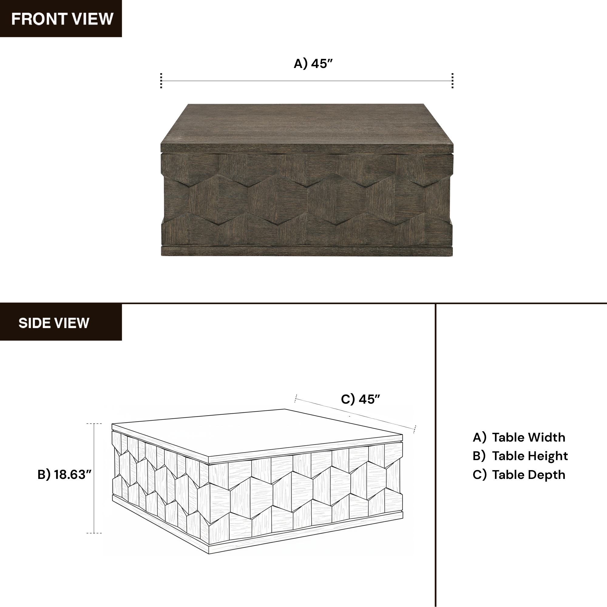 • Overall Dimensions 45'' x W 45'' D x 18.63'' H