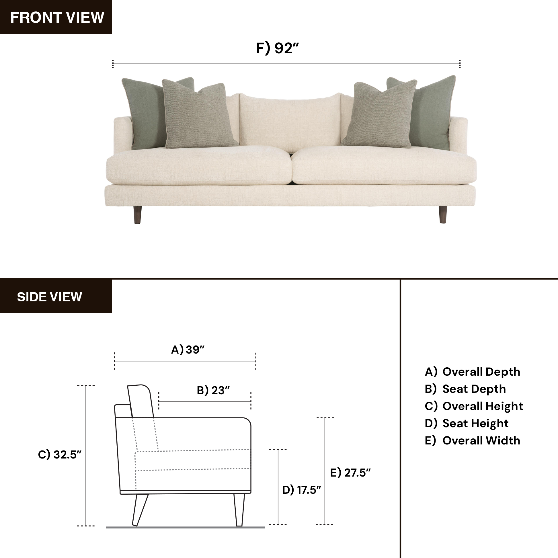 - Overall Dimensions 92" W x 39" D x 32.5" H