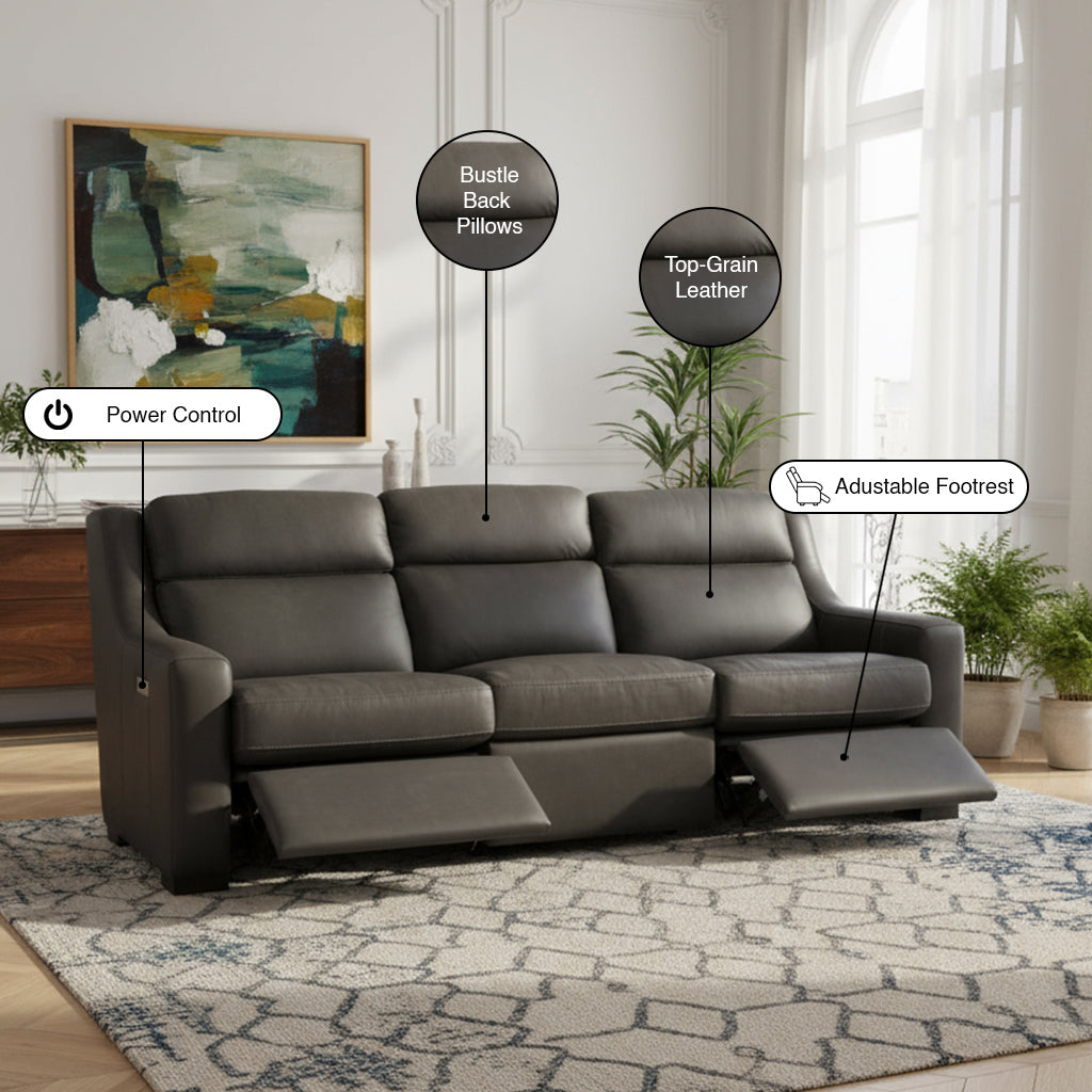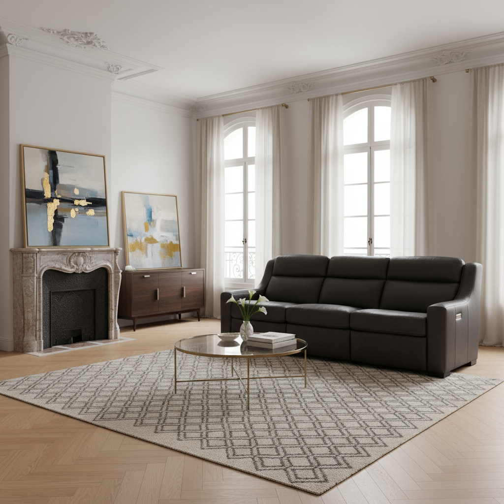 The deep lounge invites relaxation; the power-motion features hidden under a tailored leather exterior bring modern functionality. Whether for entertaining or everyday lounging, the sofa blends size, style, and versatility, making it a refined focal point that works in diverse interiors.