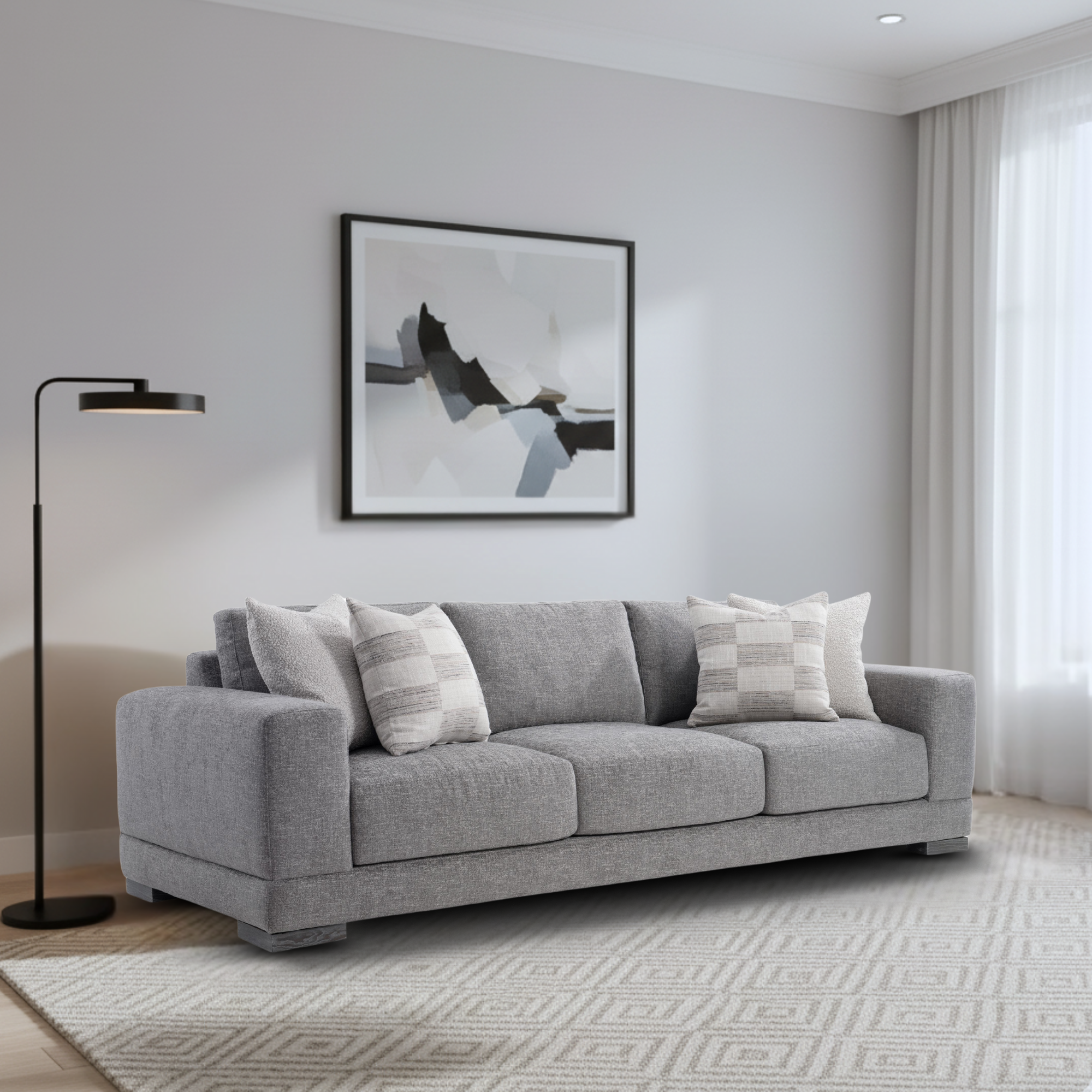 A 17″ seat height provides easy accessibility, pairing well with coffee tables and ottomans. With a 22.5″ seat depth for relaxed seating and 23.25″ arm height for support, it balances comfort and style effortlessly. Designed with clean lines and contemporary proportions, the Lars sofa combines form, function, and sophistication, making it a versatile centerpiece for larger living spaces.