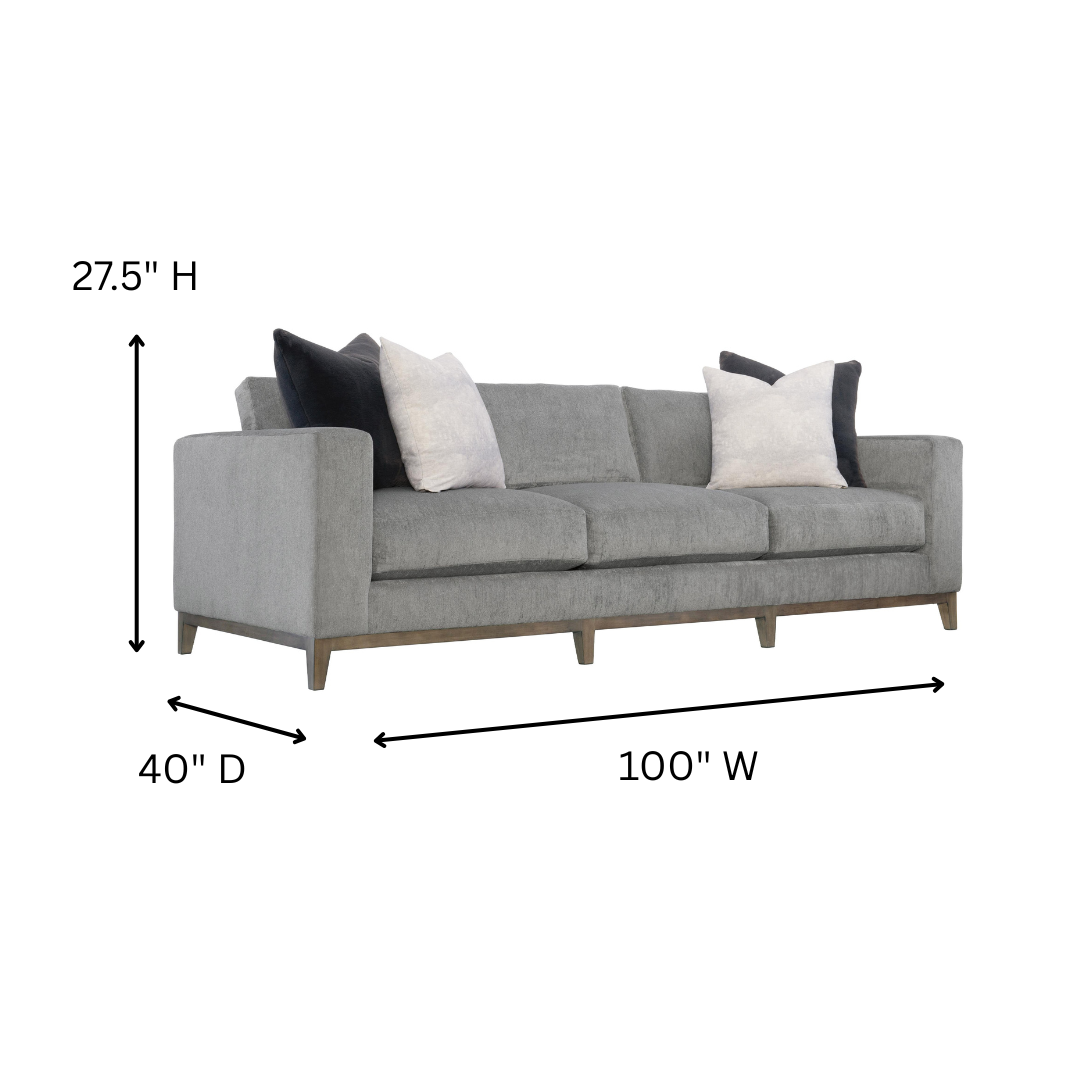 - Track Arms and Textured Wood Feet Wide track arms with modern profile, complemented by block-style wood feet in Tadon Cerused finish for warmth and rustic texture.