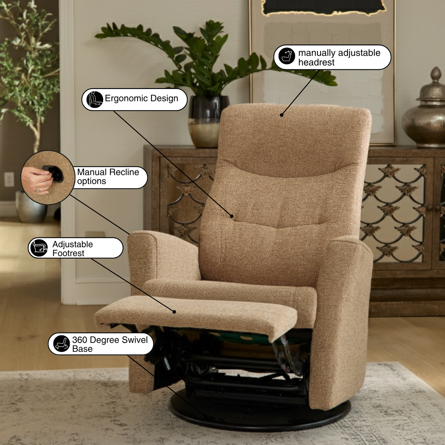 Designed to live beautifully in real homes, Oslo’s 360° swivel and gentle glide make conversation, TV time, and fireside lounging feel effortless. Cold‑cured foam keeps its comfort and shape, and the sleek base tucks neatly into modern, Scandinavian, or transitional spaces. Style it next to a floor lamp and a side table for your mug and book - your favorite seat is ready whenever you are.