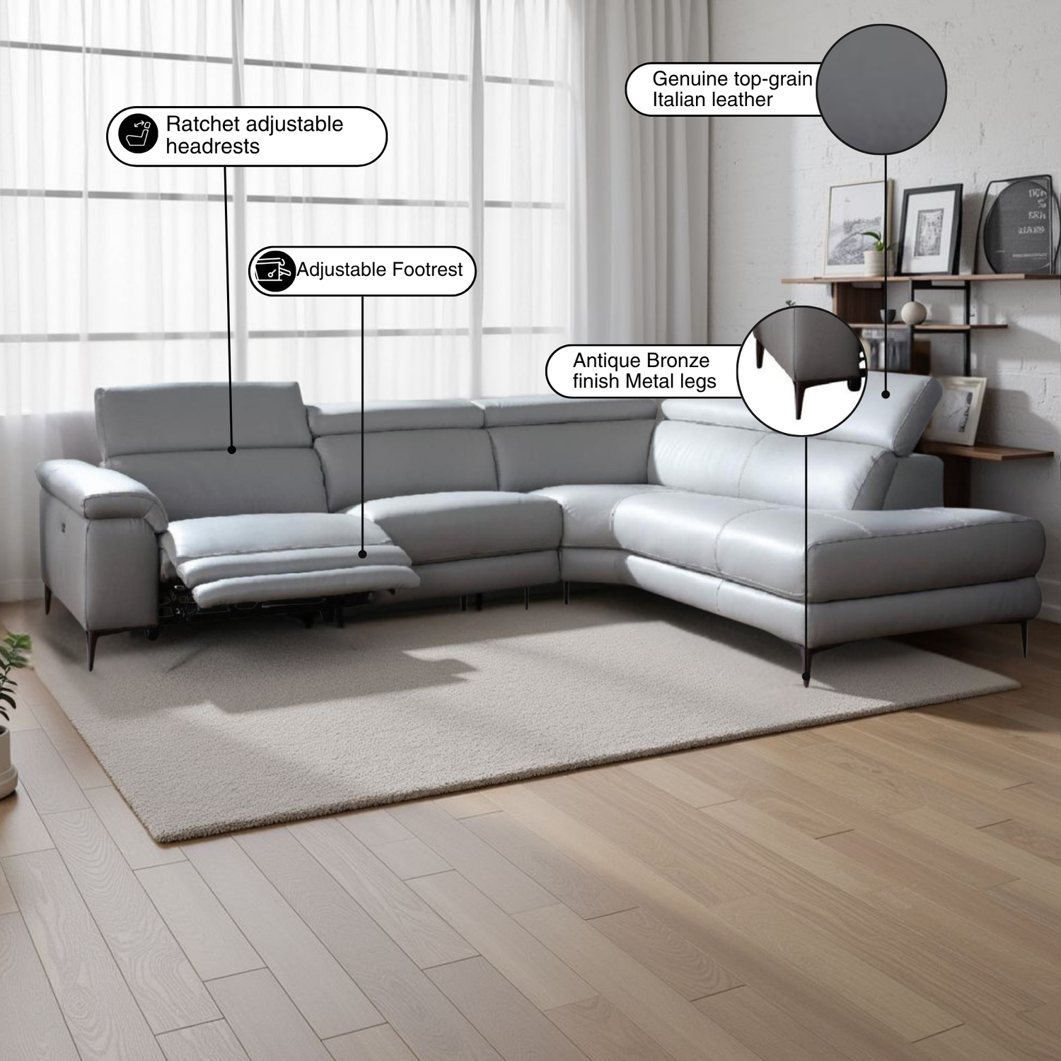 Then there's the craftsmanship. Top-grain leather covers every seating surface you touch - soft, durable, and naturally resistant to the wear and tear of busy households. The sides and back use coordinated leather-match to keep the look seamless while making care and cost more manageable. Those sleek metal legs aren't just stylish; they lift the sectional off the floor so vacuuming underneath is a breeze. With a spacious five-seat layout, you'll host movie nights, game days, and holiday gatherings without anyone feeling squeezed. And because it's available in Black, Slate Blue, and Light Gray, you can match your existing palette or refresh your whole room. The Armano is comfort you can count on, wrapped in a design that grows with your life.
