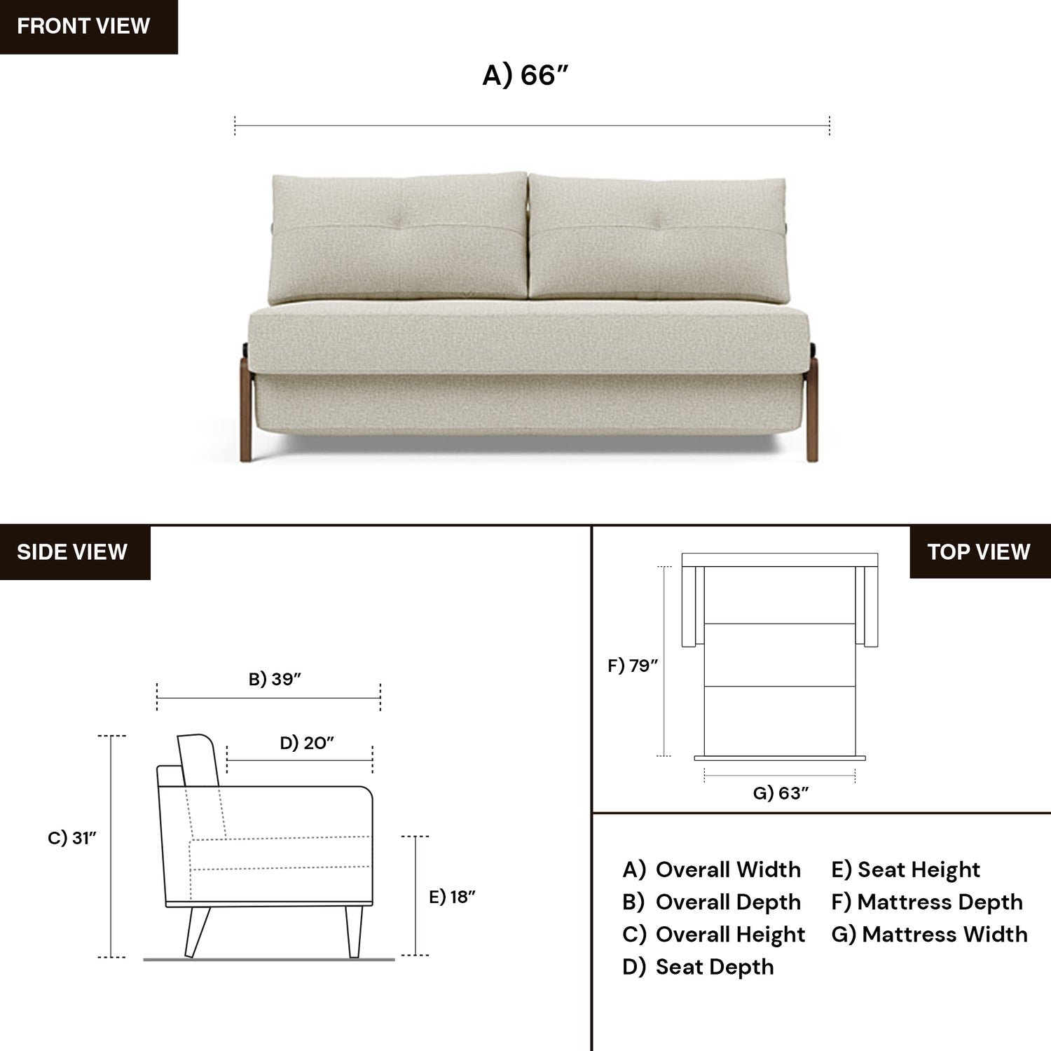 • Sleeper size 63" W x 79" L