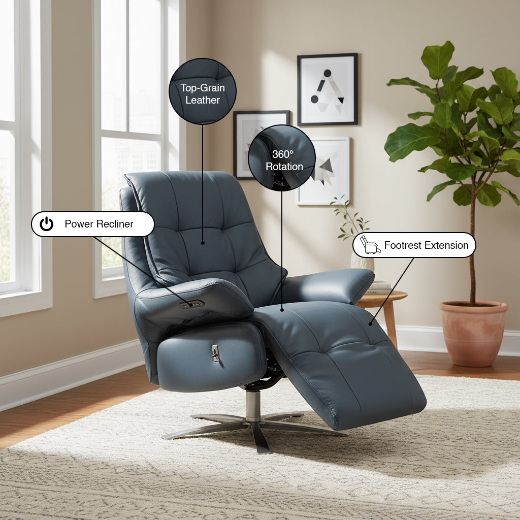 More than just a recliner, this piece is a true lifestyle upgrade. Its modern silhouette and rich blue leather upholstery bring elegance and warmth to any living room. Whether placed as a statement chair in a reading corner or paired with your sofa set, it adds both functionality and visual charm.