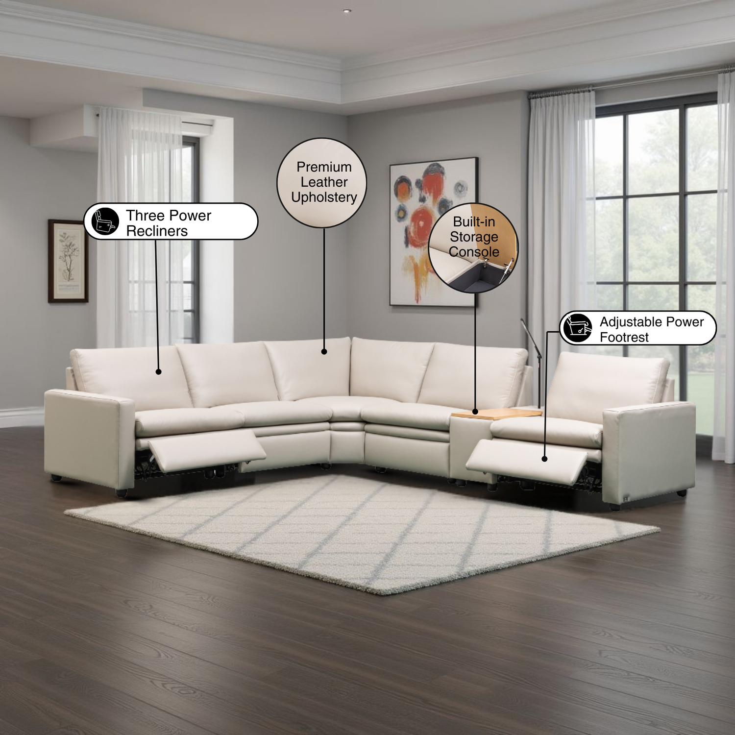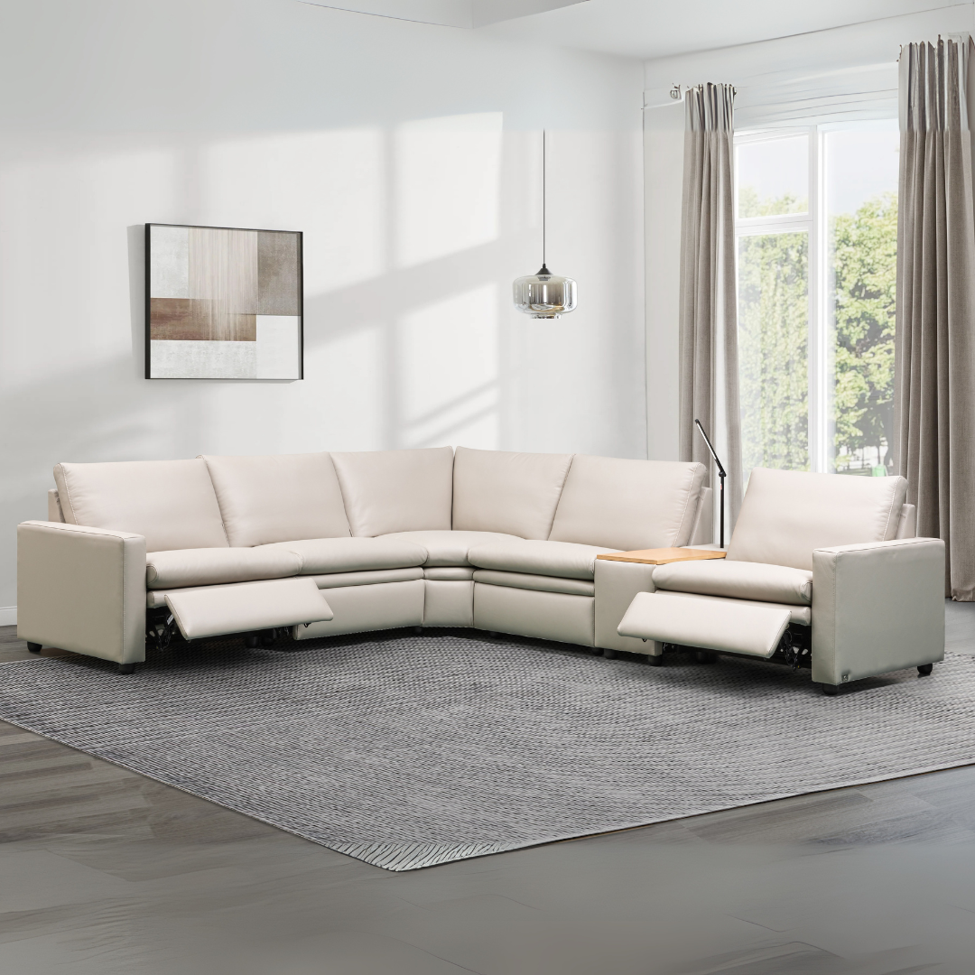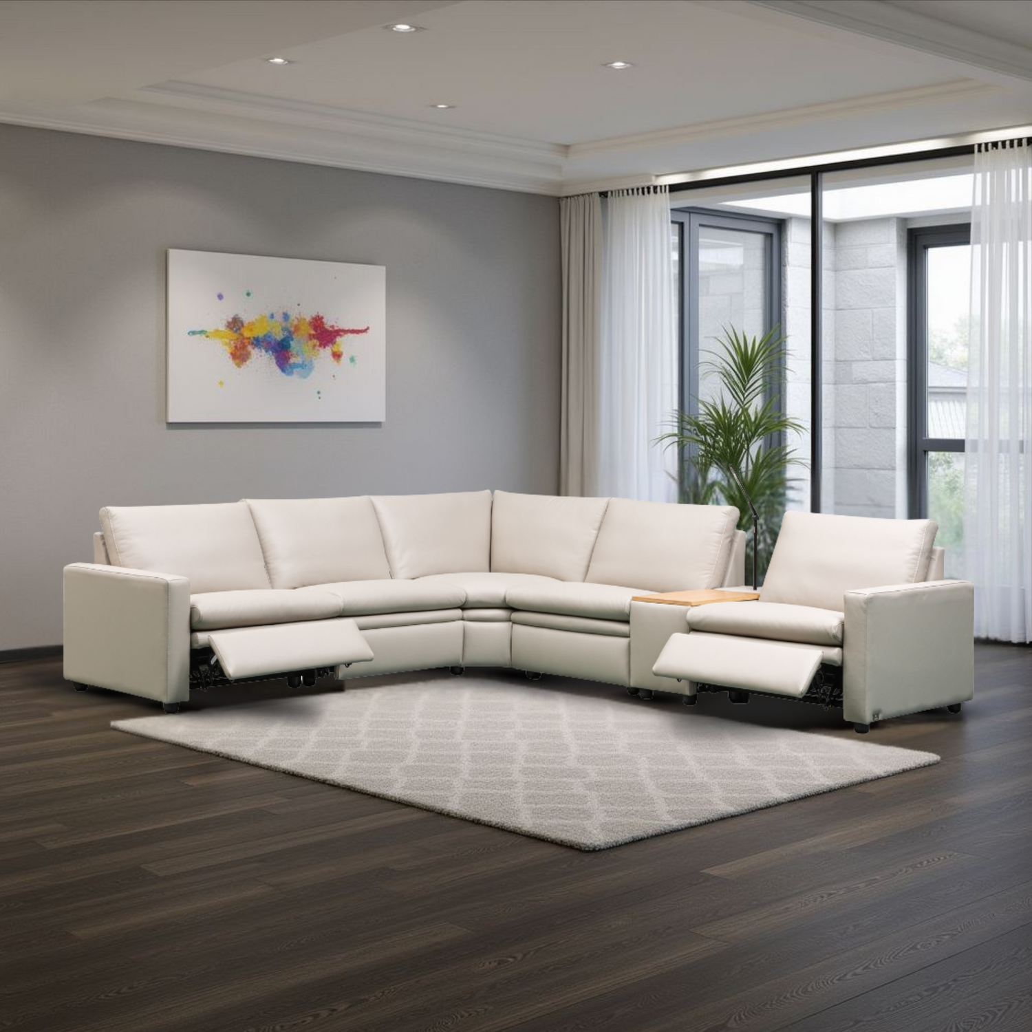 Whether you’re unwinding after work or settling in for a weekend movie marathon, this sectional wraps you in plush support. The sleek console adds smart convenience, while the soft leather finish enhances relaxation. It's more than furniture, it’s your personal comfort zone.