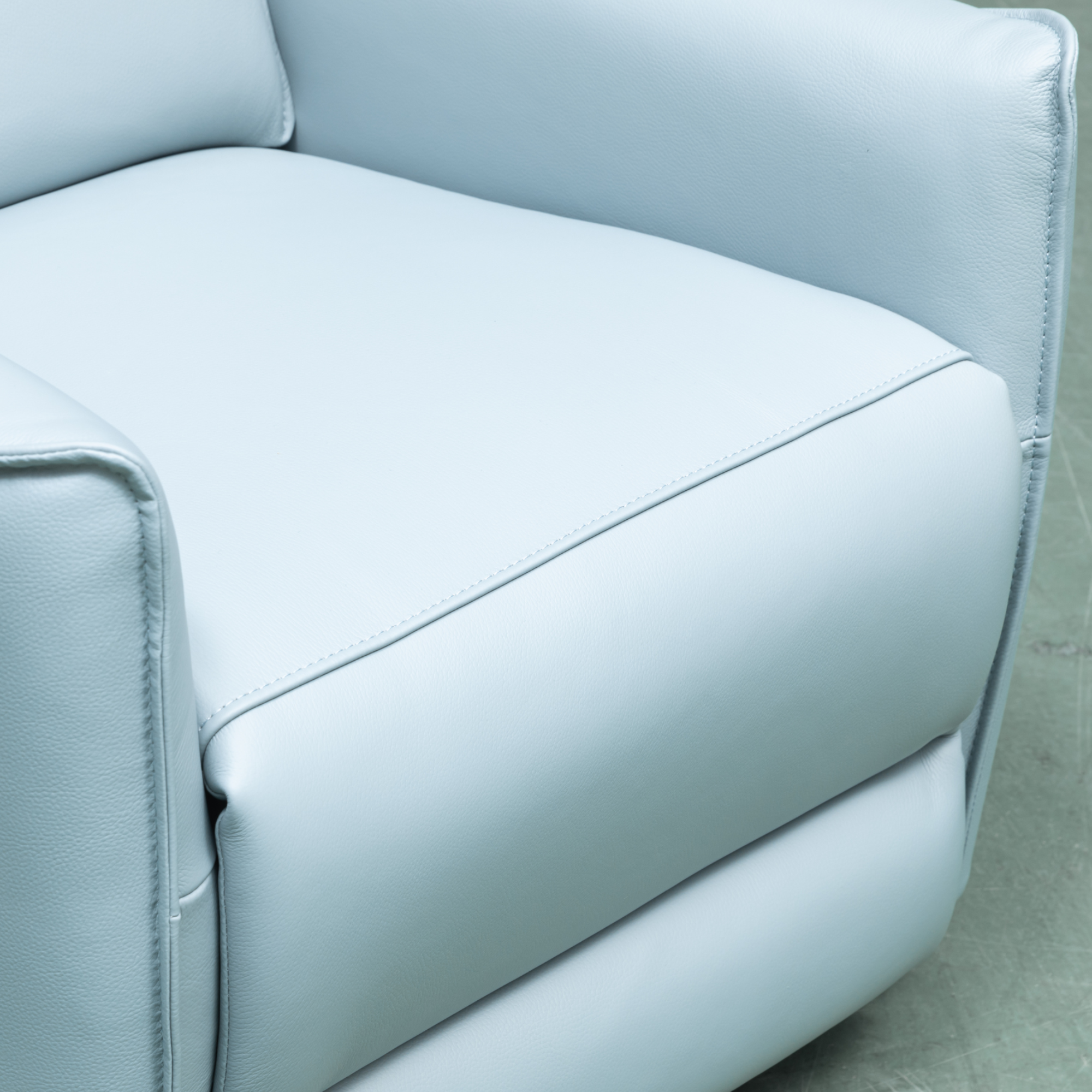 A second angle emphasizes the authentic markings and texture of the leather, showing how the material elevates the recliner’s premium appeal. Paired with minimalist décor, the chair stands out as a timeless piece that adapts seamlessly to both modern and transitional interiors. Together, the styling communicates Solaro as a polished blend of elegance and everyday comfort.
