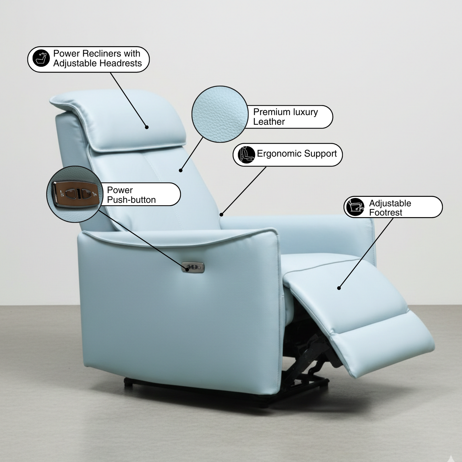 - Power push-button reclining mechanism for smooth and effortless adjustment