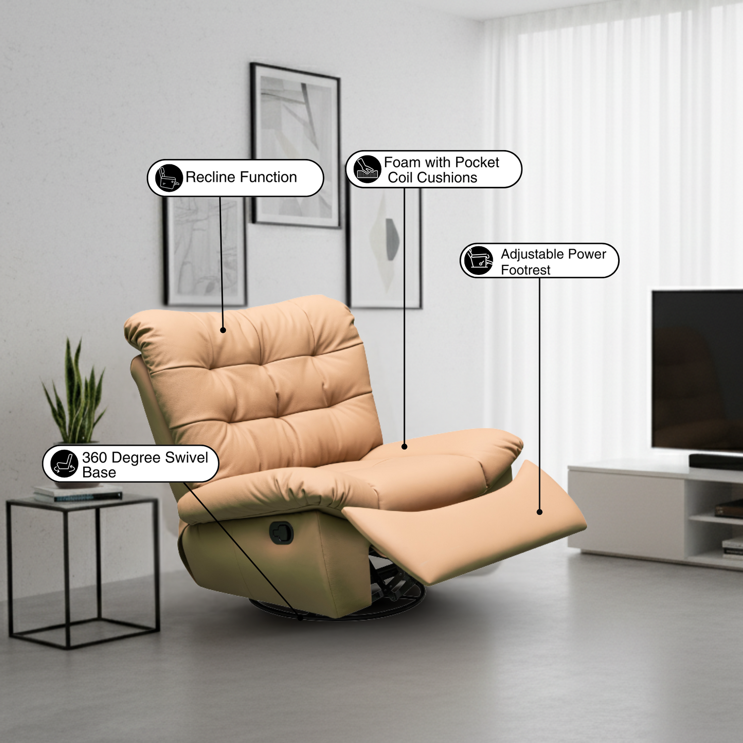 Comfort is at the heart of this recliner. Plush cushioning supports you for hours of relaxation, while the adjustable footrest helps you stretch out exactly how you like, giving your legs the perfect rest. Add in the 360-degree swivel base, and you’ve got the freedom to move smoothly without ever leaving your comfort zone. With its versatile, modern design, this recliner doesn’t just complement your home - it enhances the way you live in it.