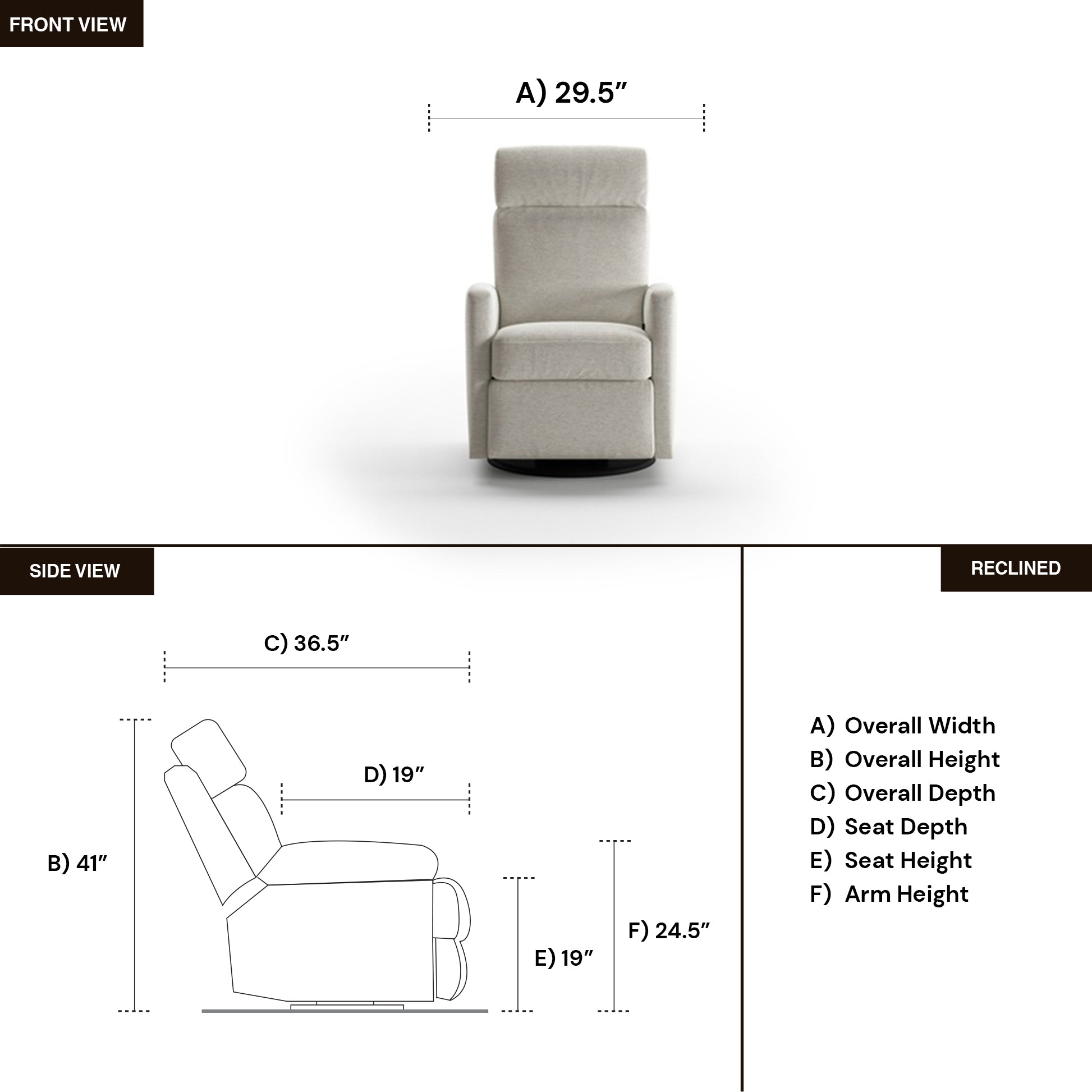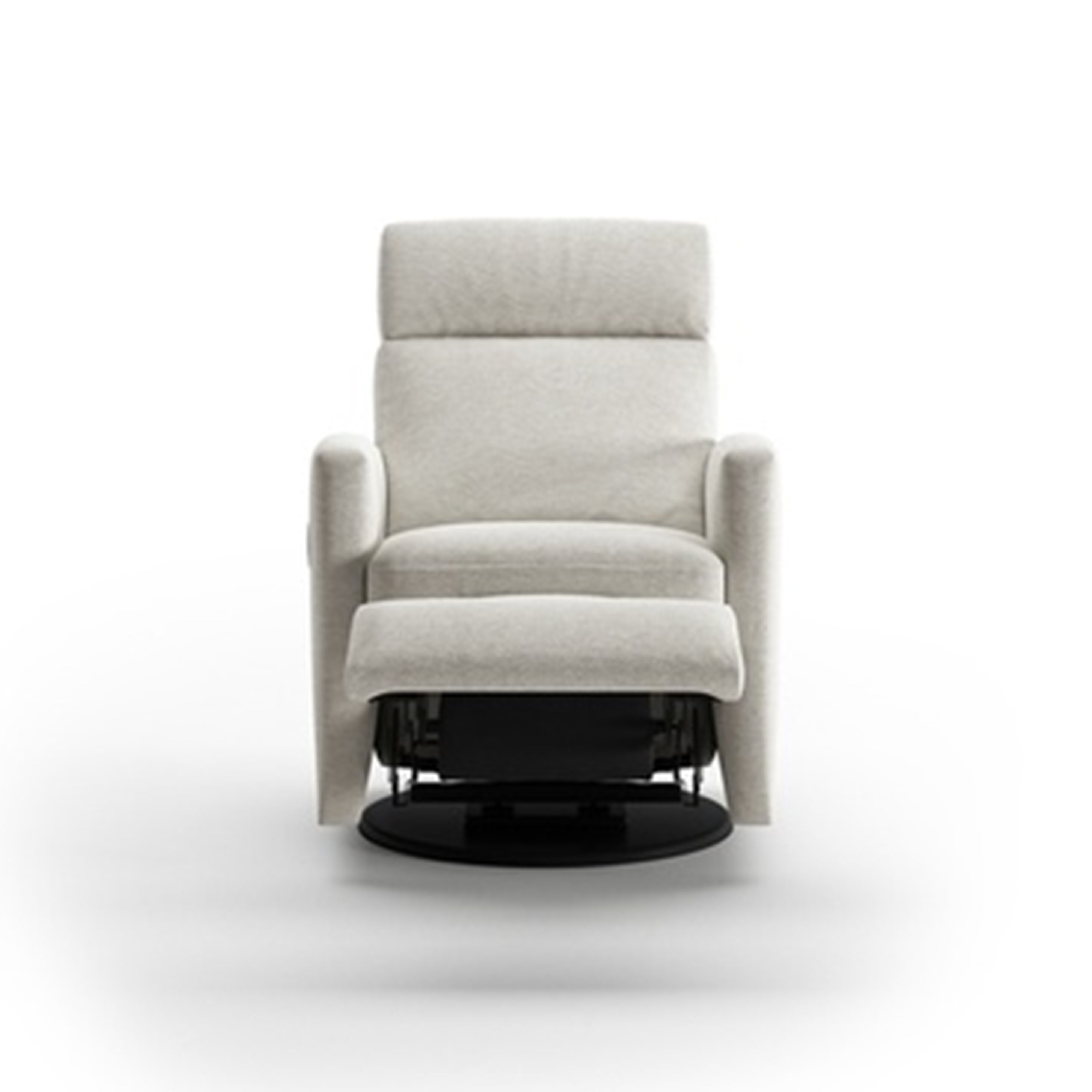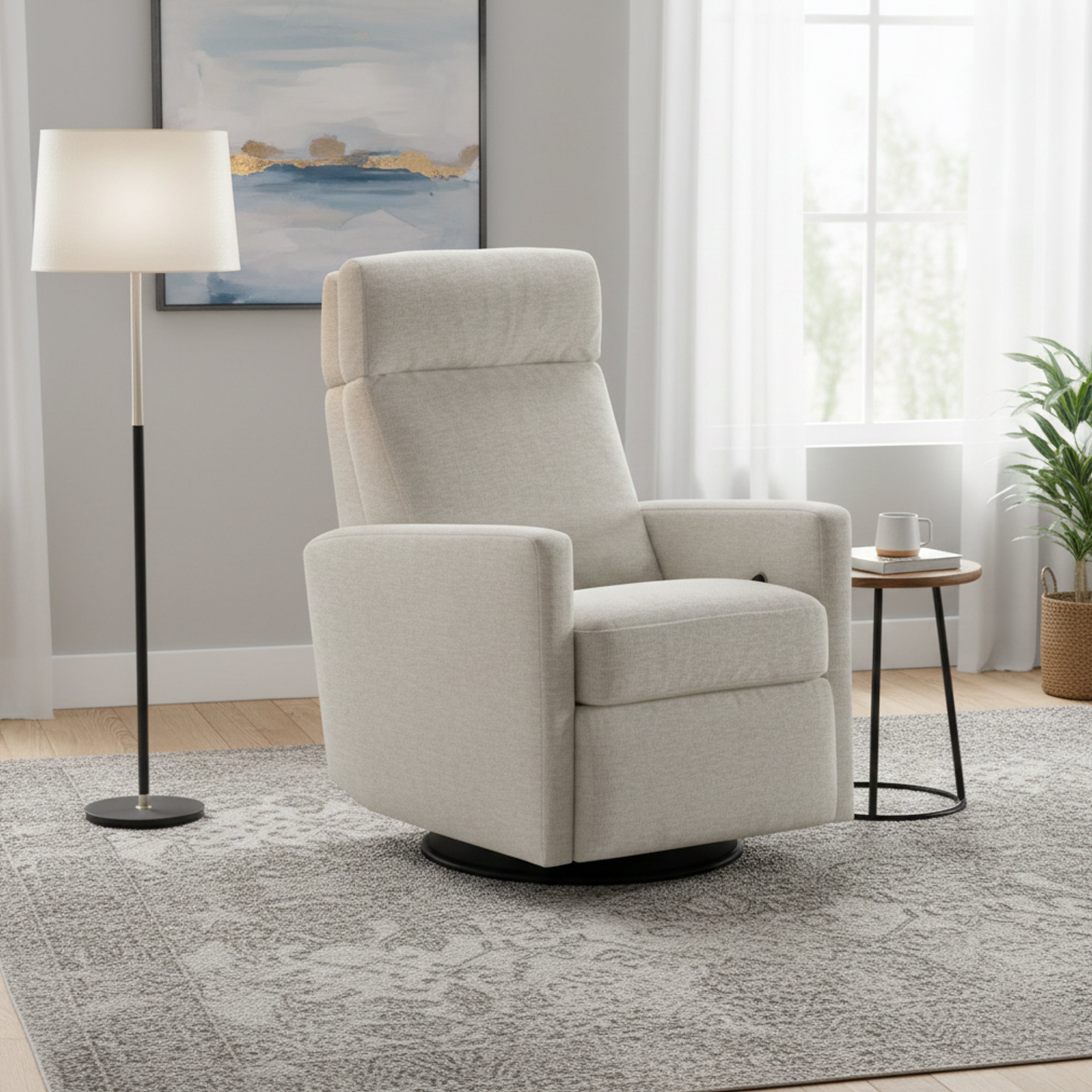 The Track Recliner blends style and longevity with its swiveling and glider base, offering dynamic motion for versatile relaxation. The integrated battery-powered option provides up to three months of effortless reclining per charge, while the manual mechanism ensures timeless functionality.