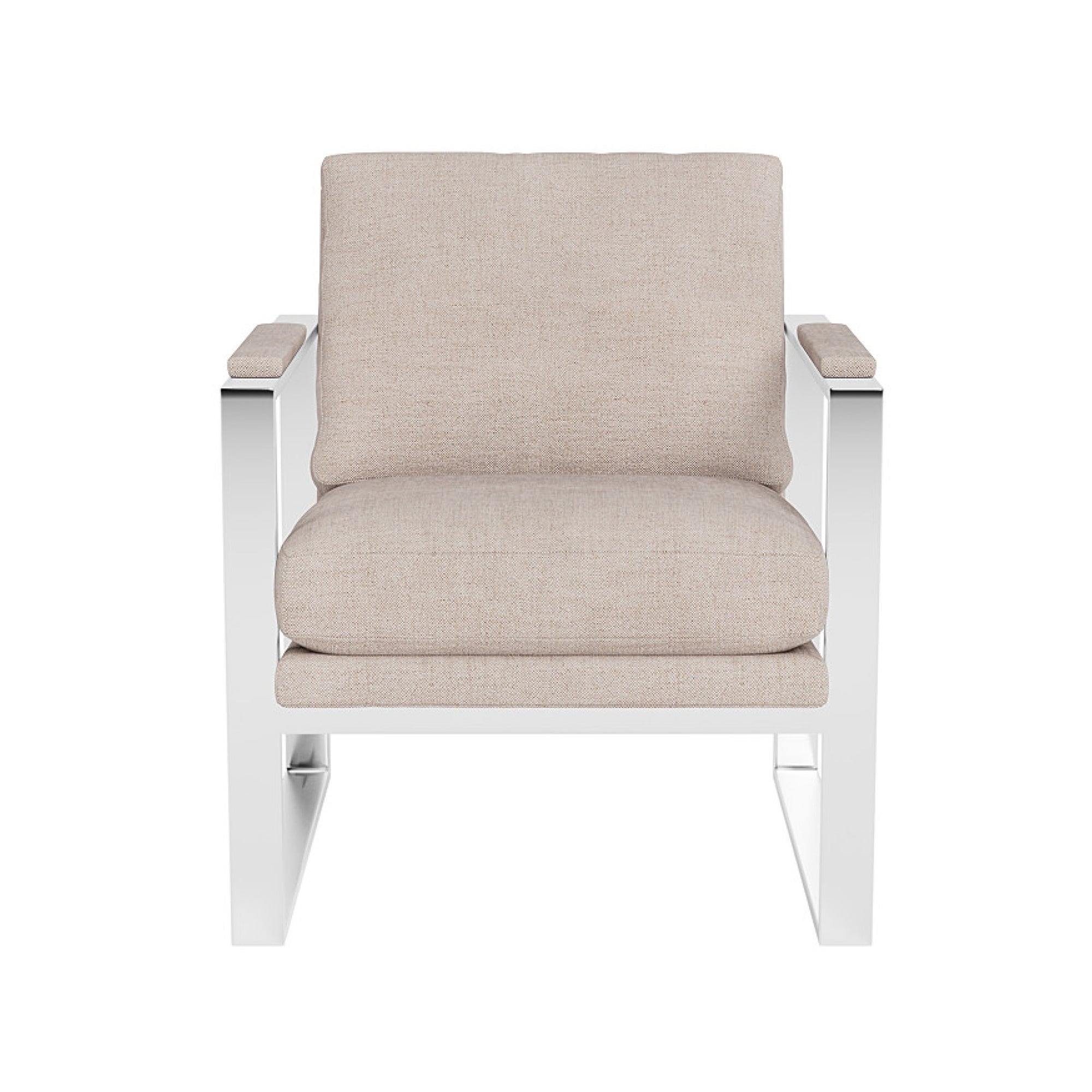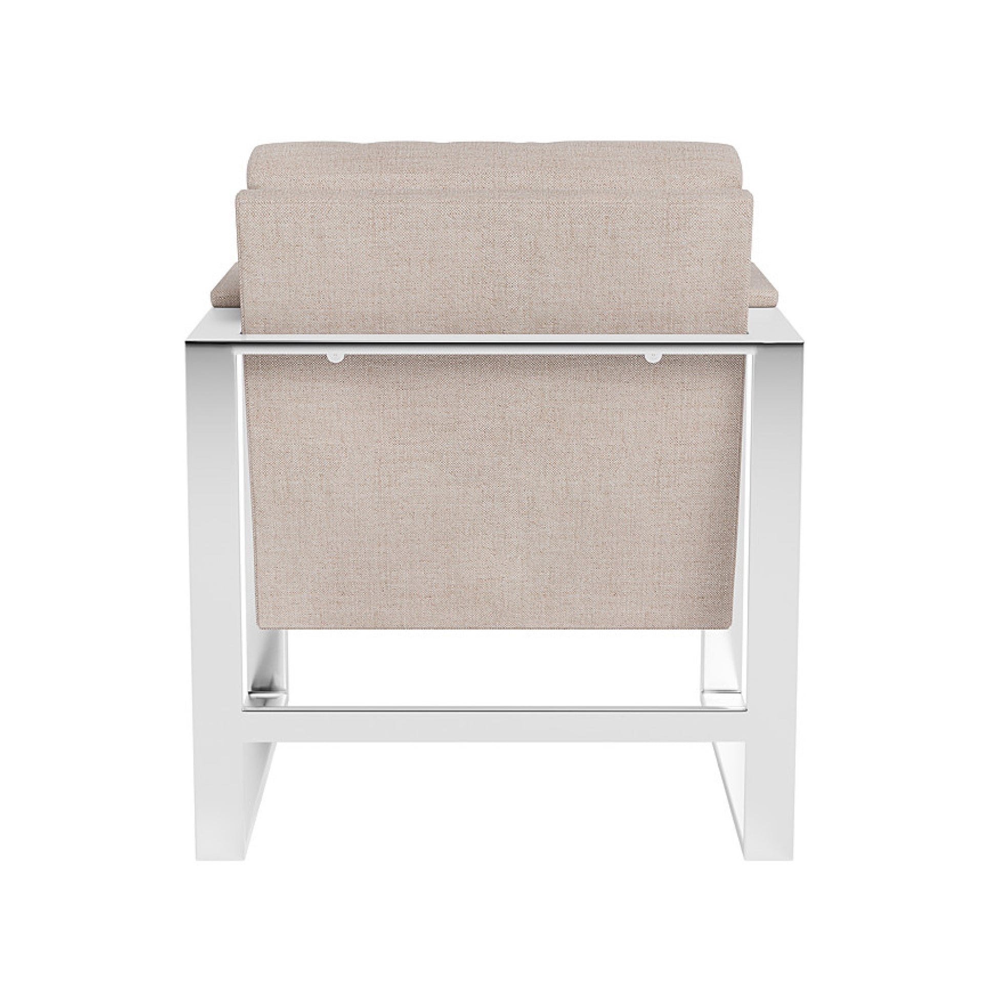 The fixed back cushion ensures lasting structure, maintaining its clean, tailored appearance while offering dependable comfort. The carefully contoured seat ensures balanced support, while the open-frame design keeps the chair visually light, giving your room a sophisticated sense of space. Each feature highlights its thoughtful construction, from the precision welding of the frame to the expertly upholstered seat that resists wear and maintains its elegant look over time.