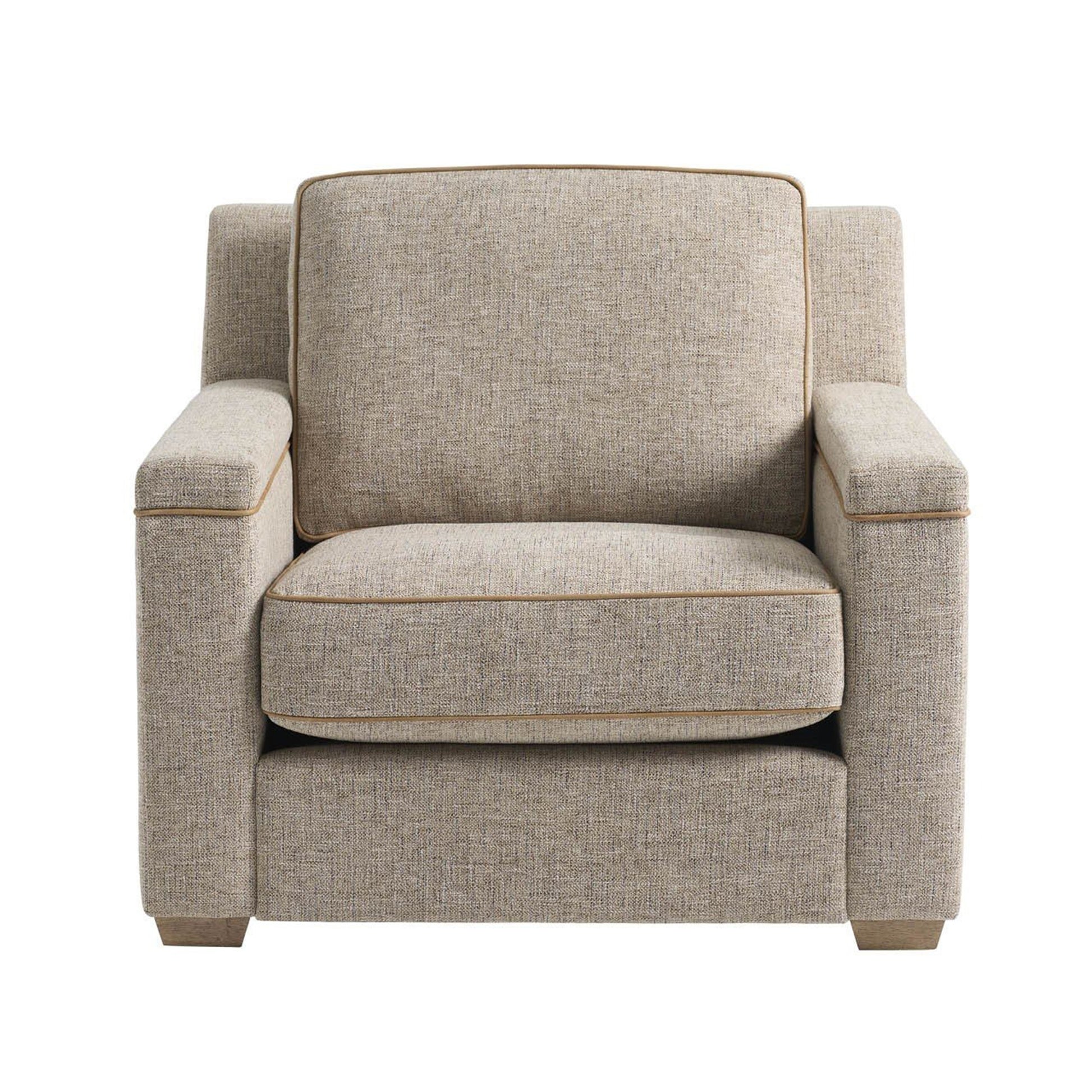 Zooming into the details reveals the true craftsmanship behind the Liam Chair. The durable performance fabric is soft to the touch yet engineered for everyday wear, making it ideal for homes with frequent use. The welted detailing, textured weave, and warm brown color highlight a level of refinement that instantly elevates the overall look of your living space.