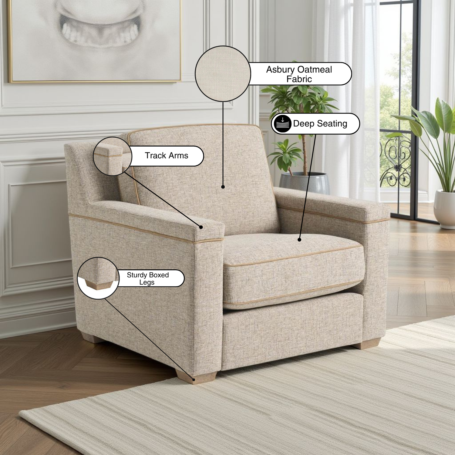 Built with solid frame construction and premium foam cushioning, this chair delivers the ideal balance of structure and sink-in comfort. Whether used as a statement accent chair or as part of your everyday seating, the Liam Chair’s modern/contemporary design and versatile neutral tone ensure lasting appeal. It’s the perfect blend of luxury comfort and functional design, crafted for real-life living.
