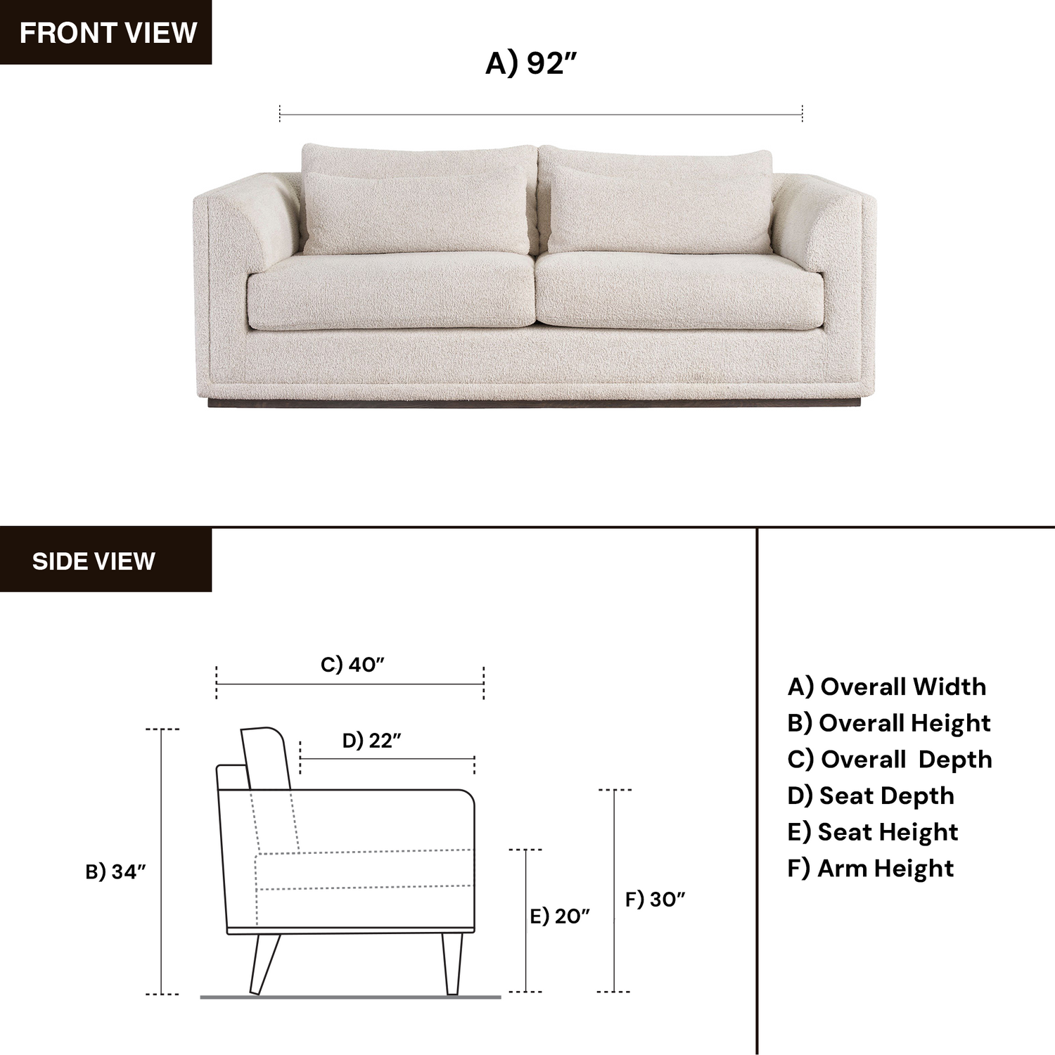 The Theo 3-Seater Sofa is thoughtfully crafted with dimensions that balance spacious comfort and sleek design. At 92″ wide, 40″ deep, and 34″ high, it offers generous seating while maintaining a streamlined profile that fits beautifully in both large living rooms and cozy apartments. Its size feels substantial without overwhelming your space, making it a versatile choice.